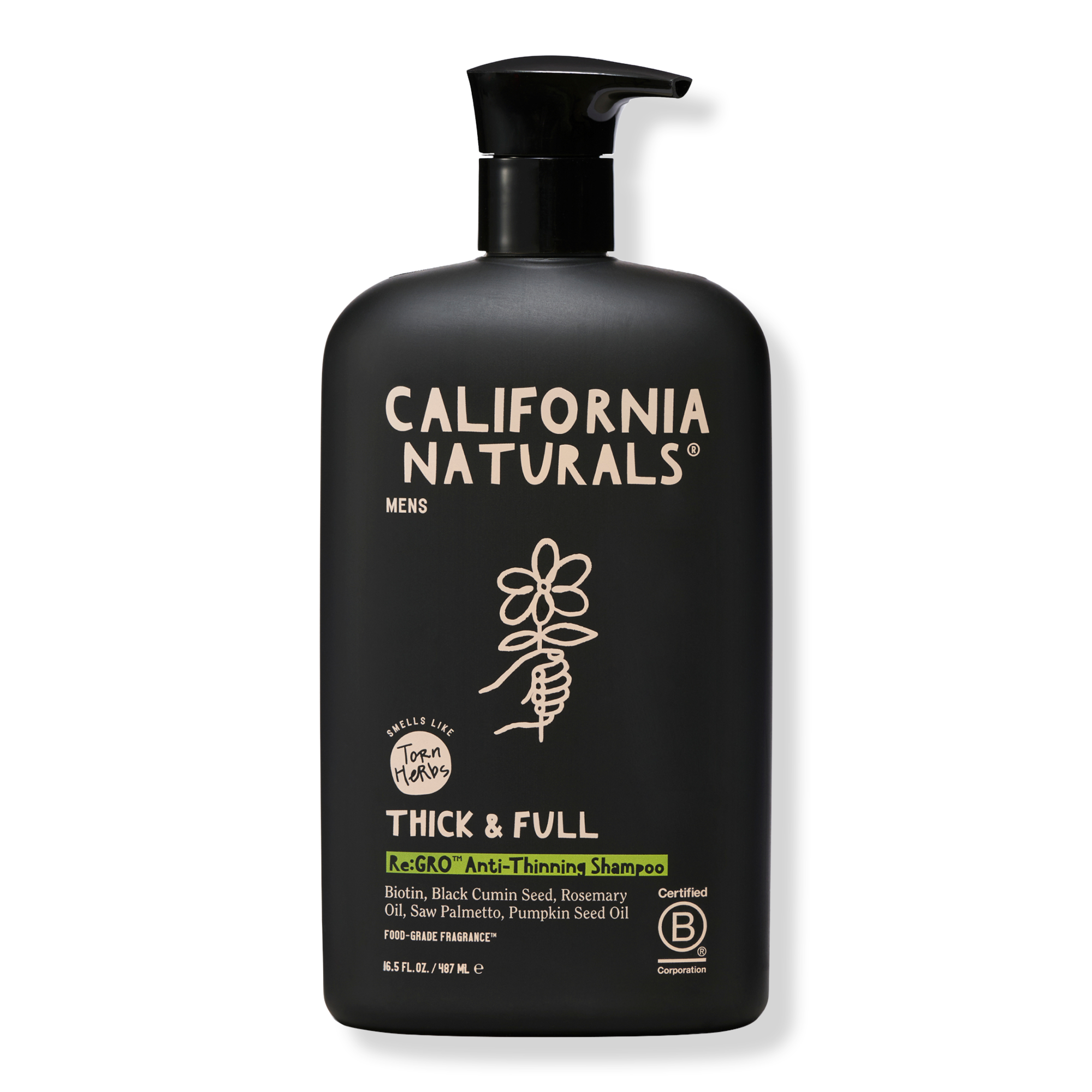 California Naturals Re:Gro Shampoo for Men supports your scalp health, as well as your strands, with a scalp stimulating blend to bolster follicles for growth and reduce flakes, while the strengthening Vitamin Biotin blend helps to strengthen roots and strands for reduced breakage.