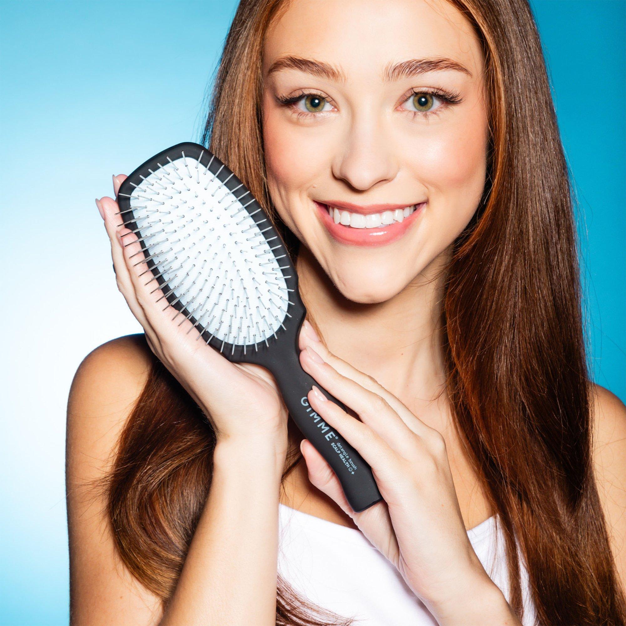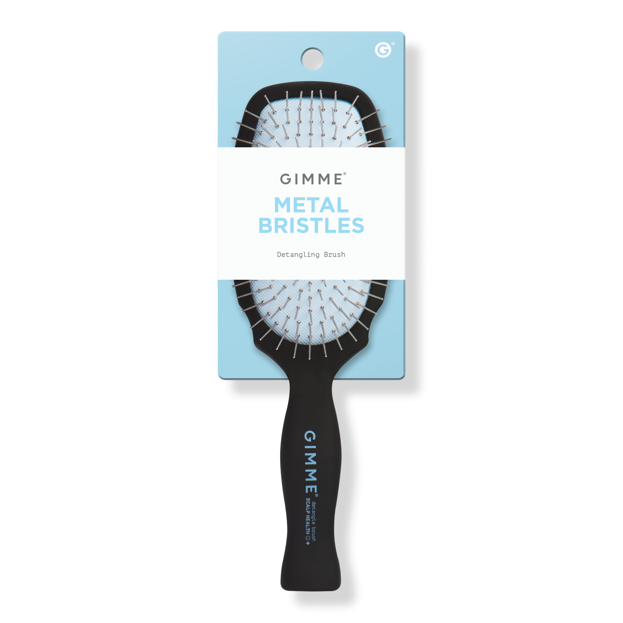Designed for medium hair types, Gimme Beauty's Metal Flex Brush removes scalp buildup & distributes your hair's natural oils for strong, healthy strands. No pulling or tugging with a comfy handle and a flexible cushion, this 100% stainless steel-bristled brush smoothes out tough tangles with ease.