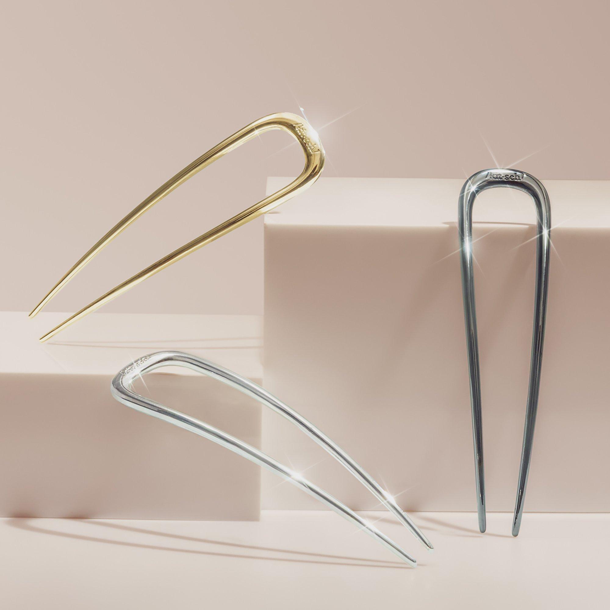 Effortlessly keep your hairstyle in check with the sleek Kitsch Metal French Hair Pin. It slips smoothly through your hair, ensuring a snag-free, polished look. It’s ideal for stylish buns, topknots, or enchanting half-updos—take it along wherever you go for a quick style boost!
