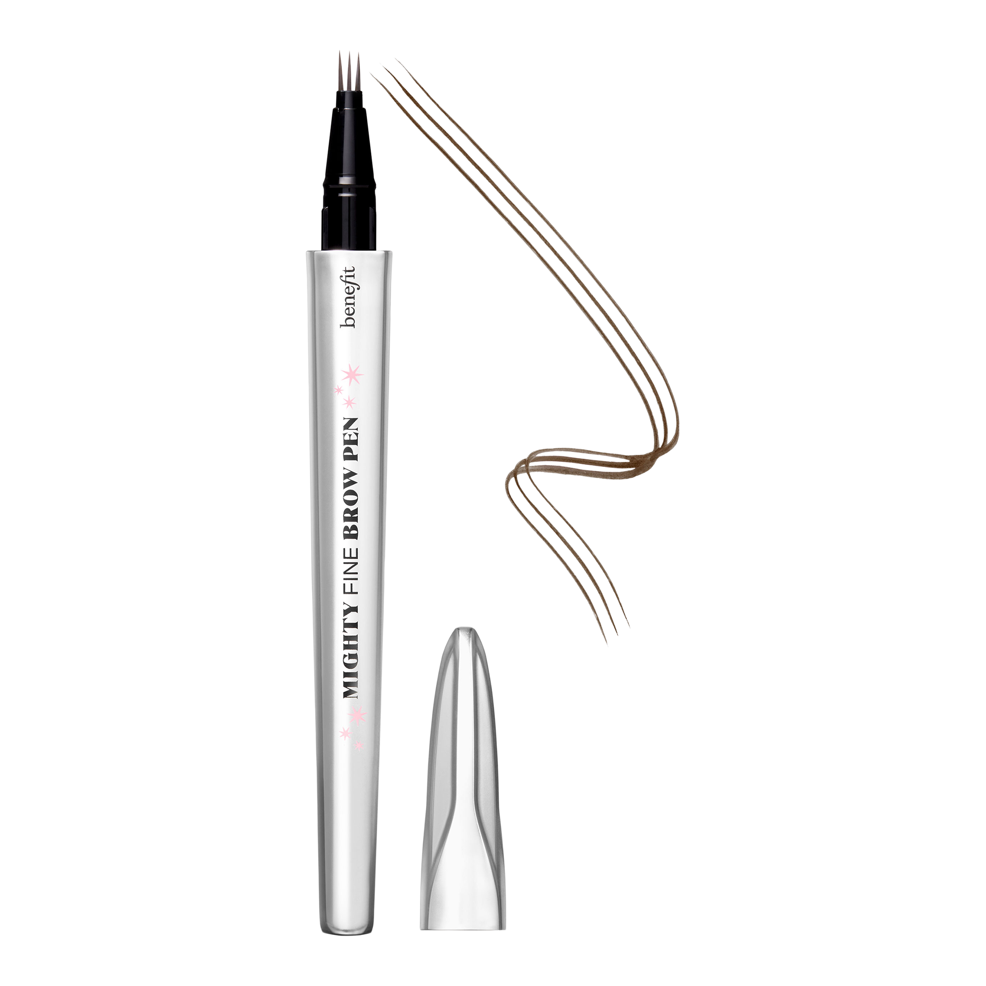 Benefit's Mighty Fine Brow Pen is the FINEST triple-tip brow pen out there. It instantly fills in brows and mimics the look of natural hair for a full, defined look that lasts and lasts. Shake it up and flick onto clean, dry brows, for your own MIGHTY fine moment.