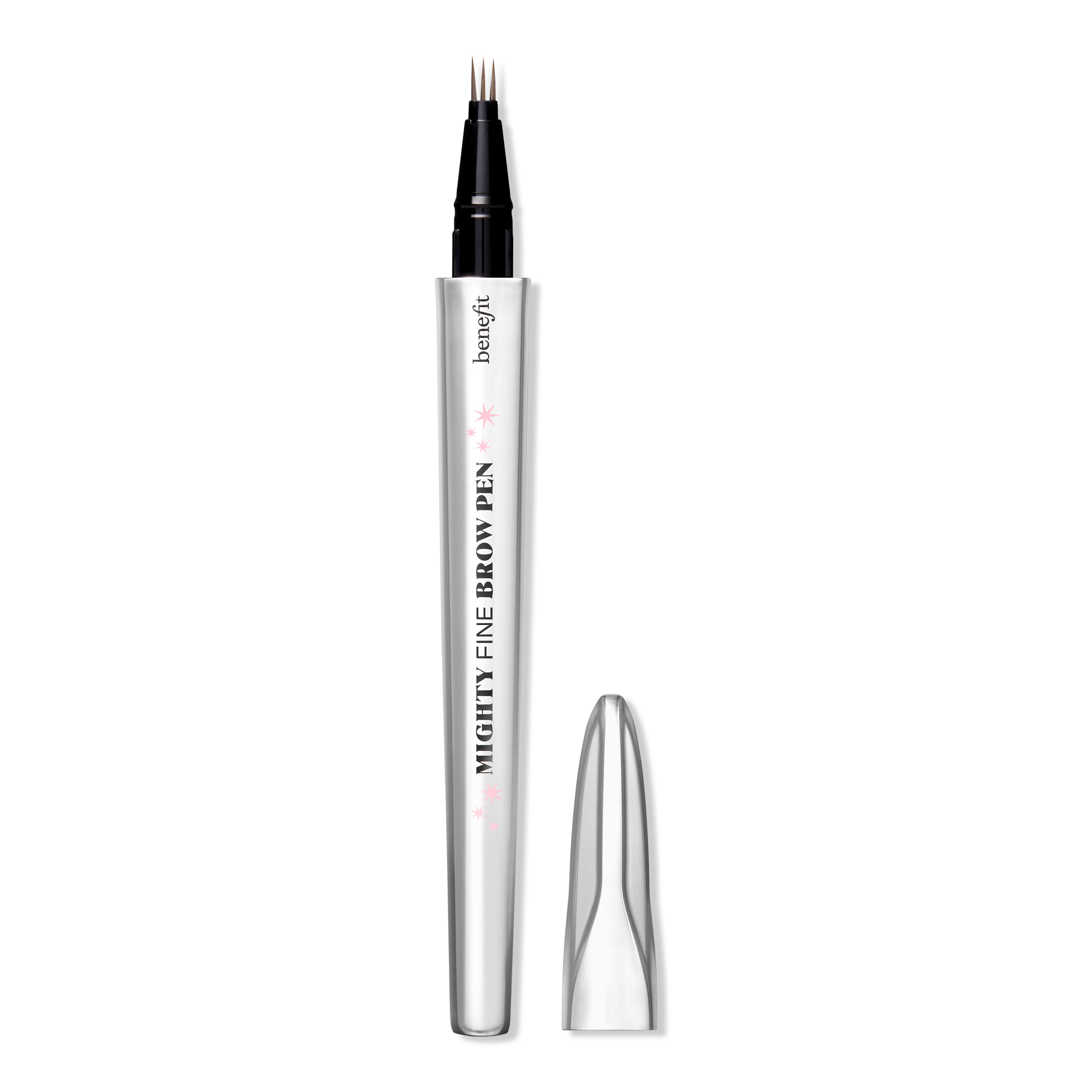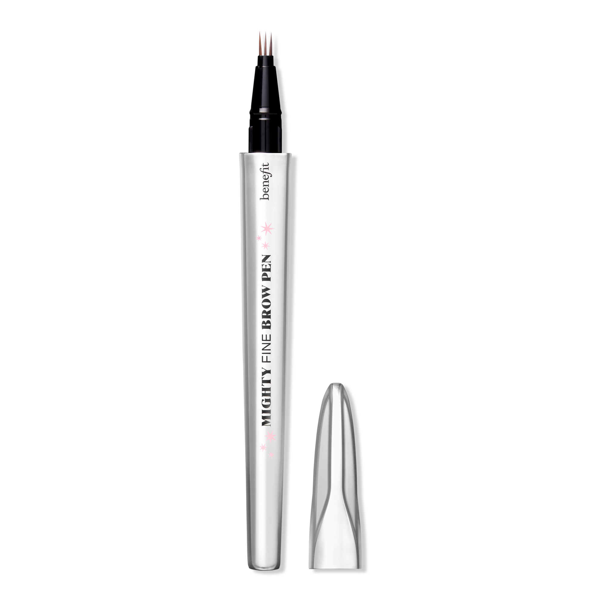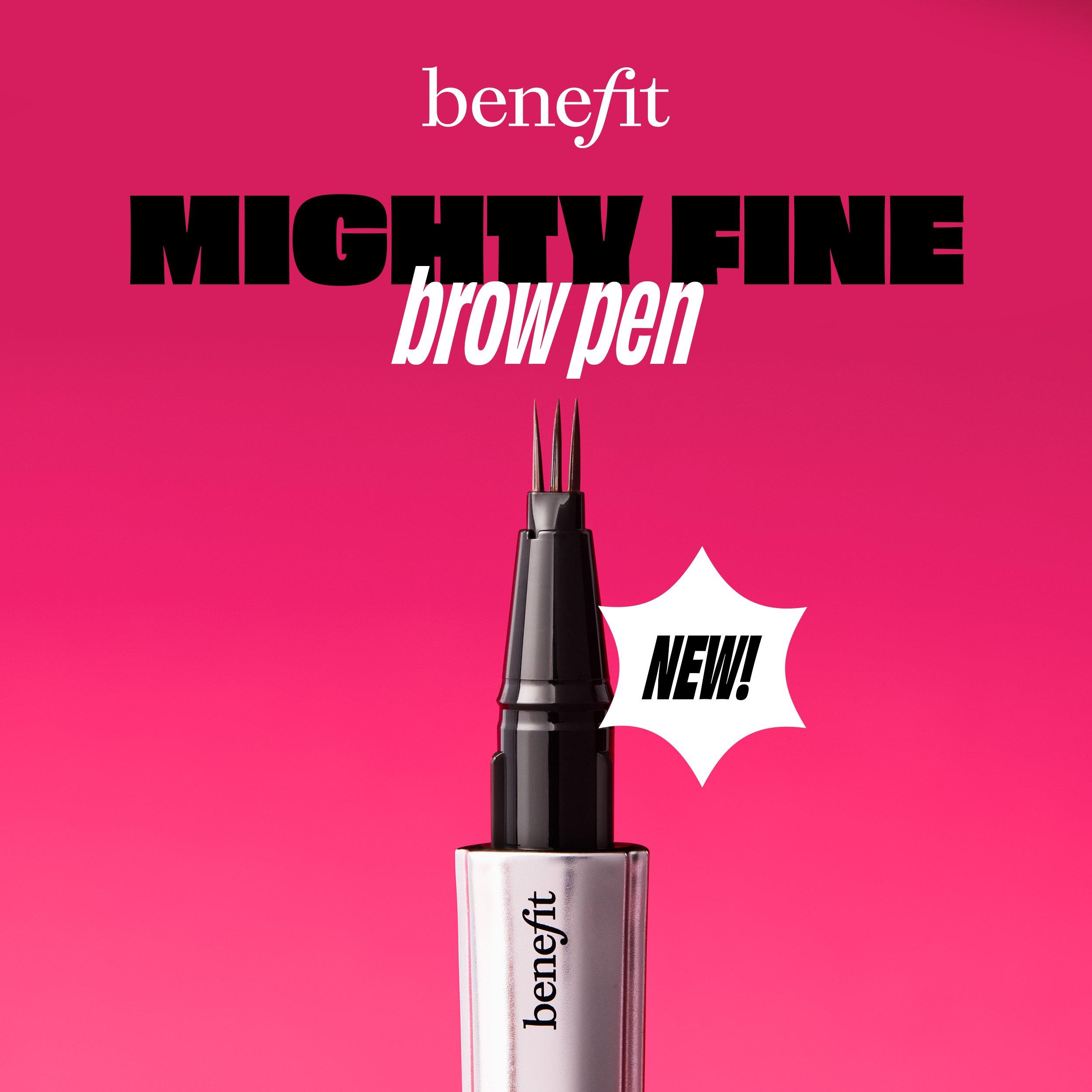 Benefit's Mighty Fine Brow Pen is the FINEST triple-tip brow pen out there. It instantly fills in brows and mimics the look of natural hair for a full, defined look that lasts and lasts. Shake it up and flick onto clean, dry brows, for your own MIGHTY fine moment.