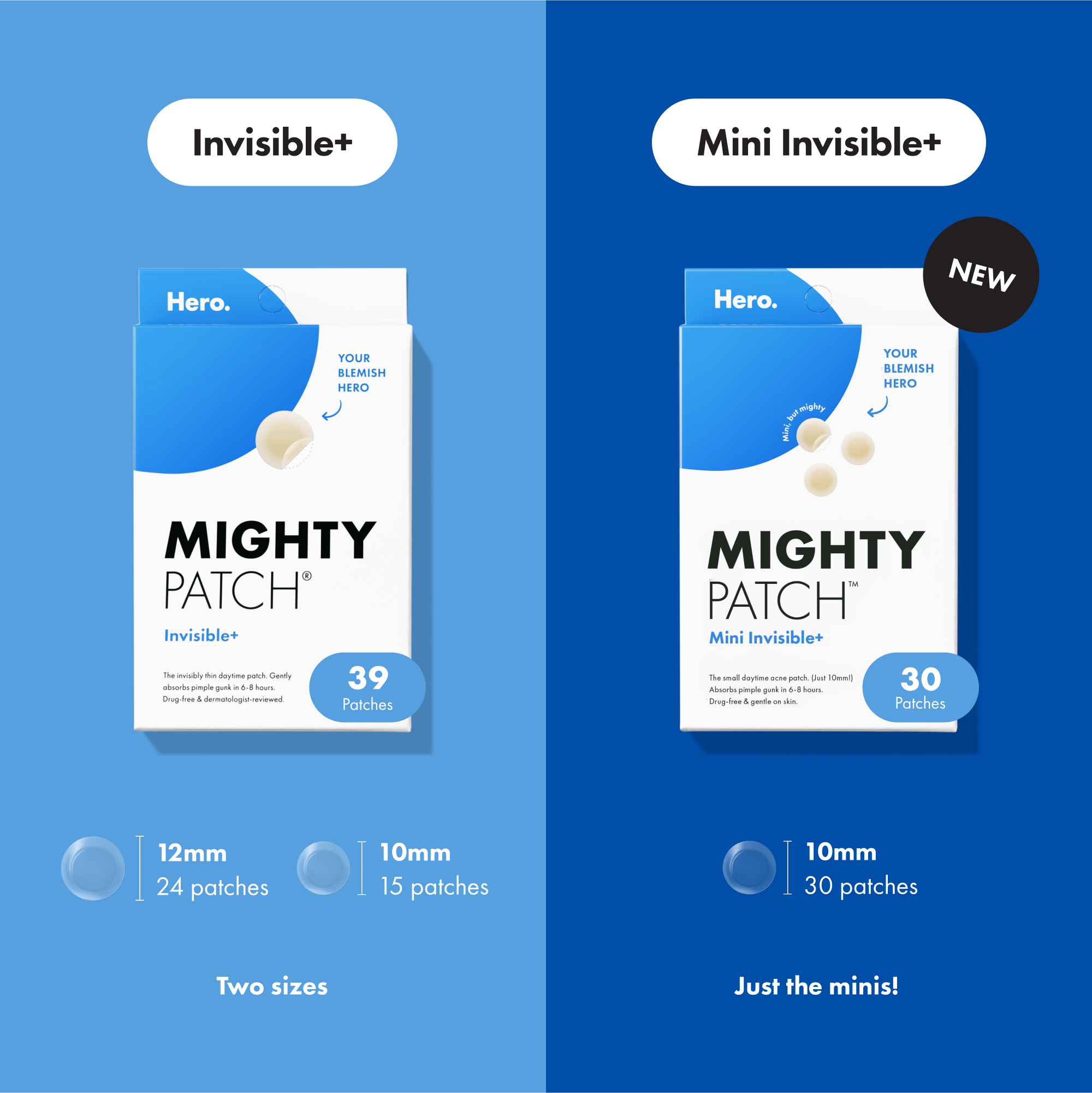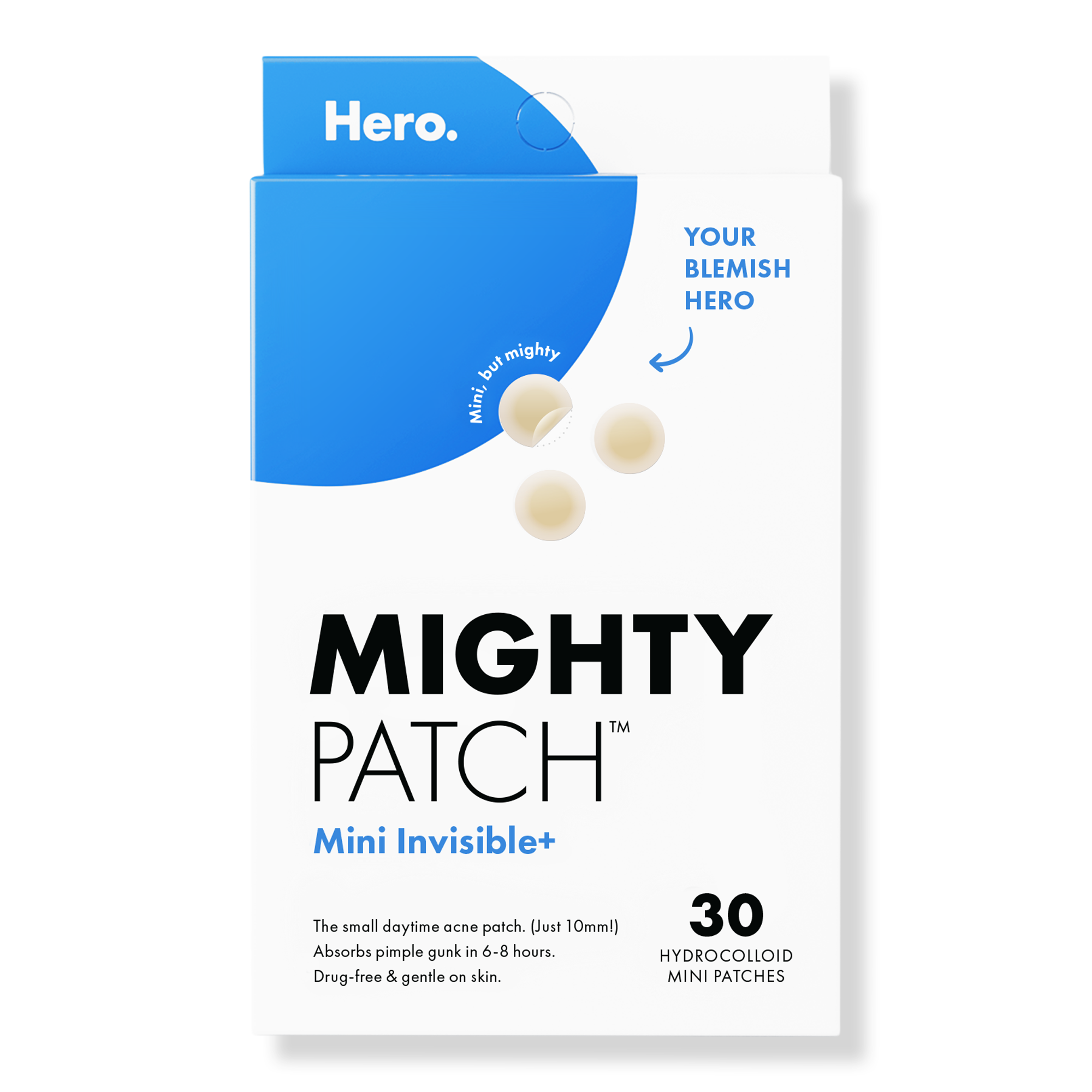 Hero Cosmetics Mighty Patch Mini Invisible+ patches are super-thin and absorb pimple gunk in just 6-8 hours. Featuring tapered edges that blend into skin seamlessly, this patch is barely there.