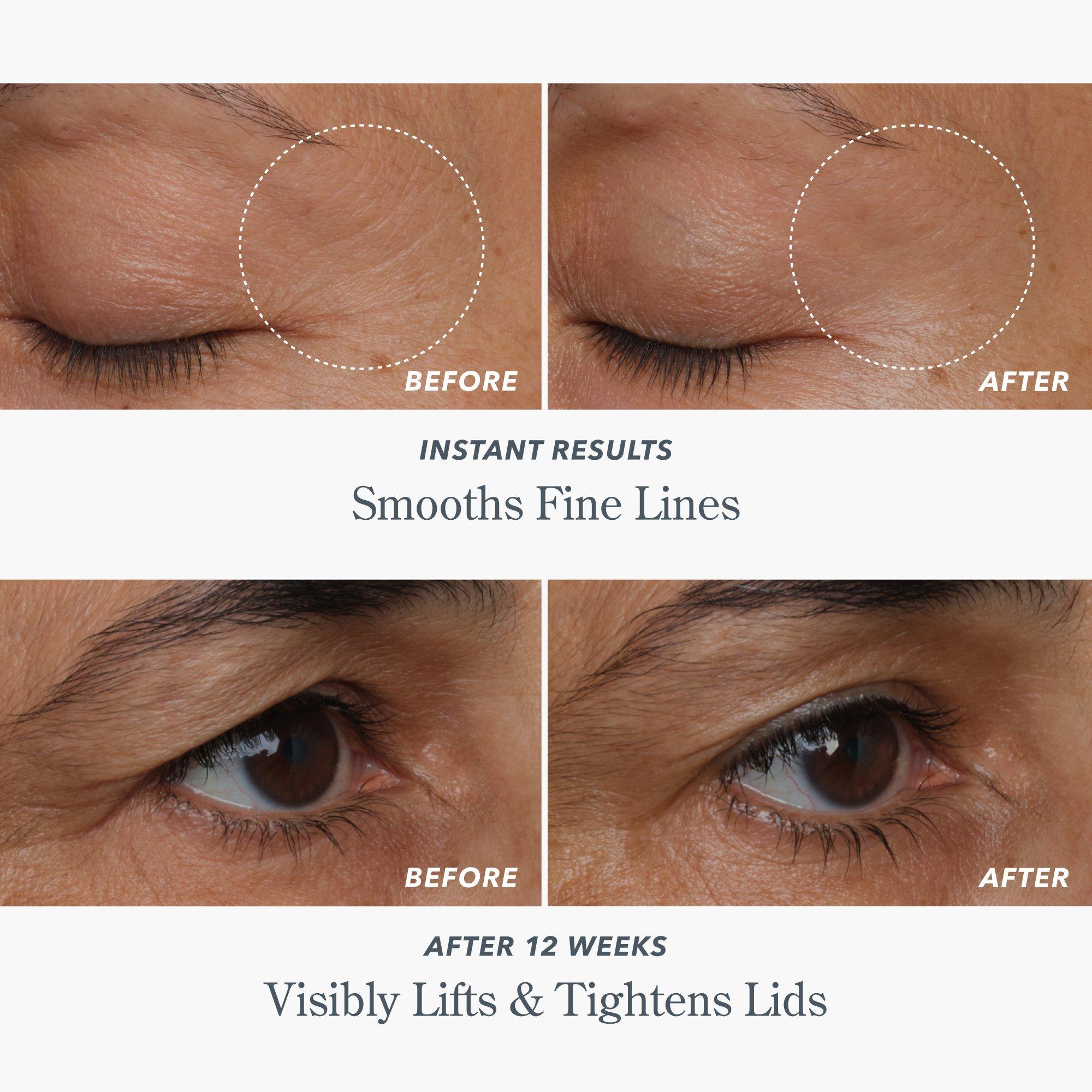 Step 1 Under-Eye: Dab the round silver end ofapplicatorin the white cream, then gently massage into the under-eye area. You may feel a temporary tingling sensation as the cream begins toworksits magic! Step2 Upper-Eye: Flip the applicator and scoop the serum with the flat end. Using your fingertip, apply the serum in an upward motion over the eyelid and along the brow bone.