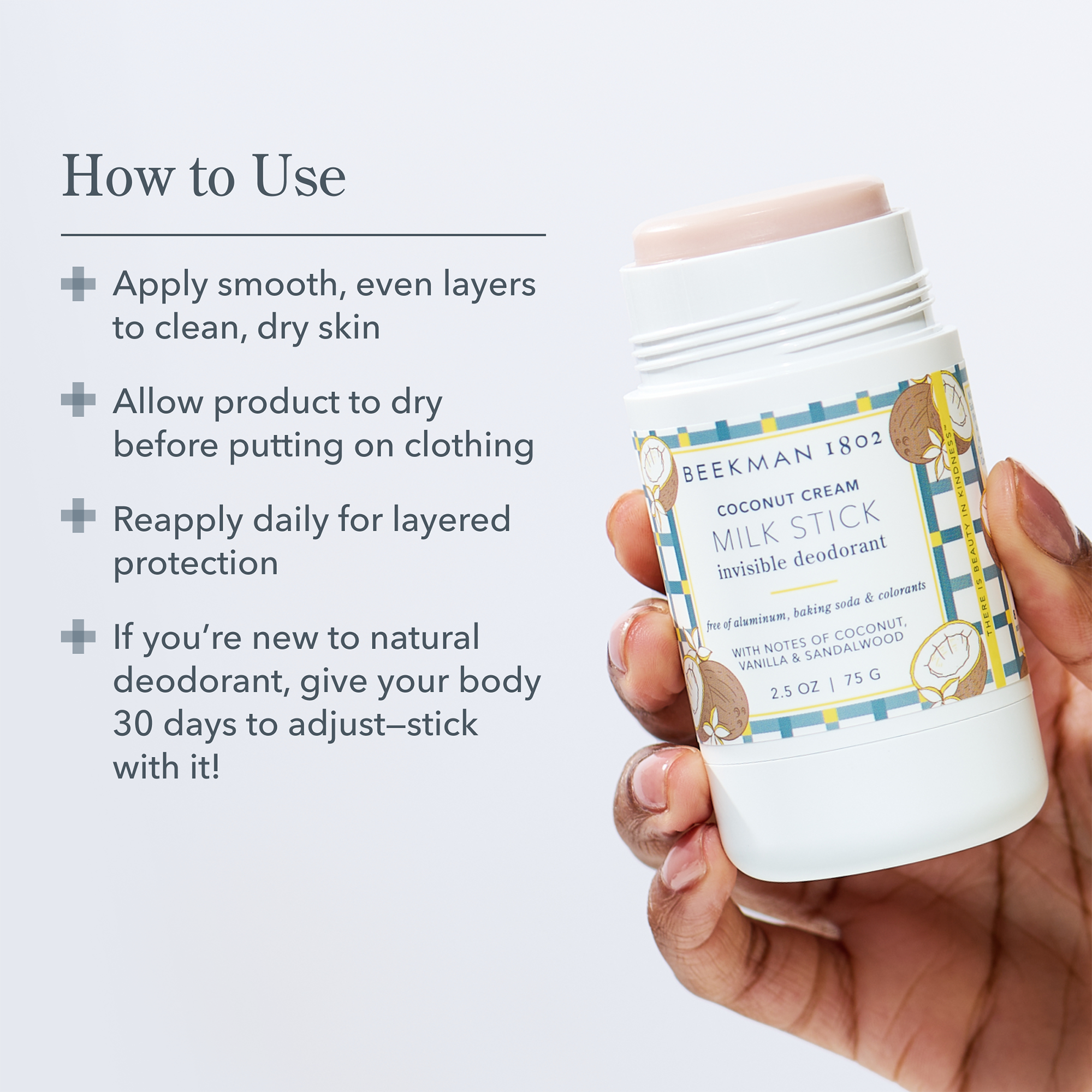 The Beekman 1802 Milk Stick Invisible Deodorant contains powerful botanical actives that combat odor all day long while a powdered goat milk base keeps skin soft & healthy.