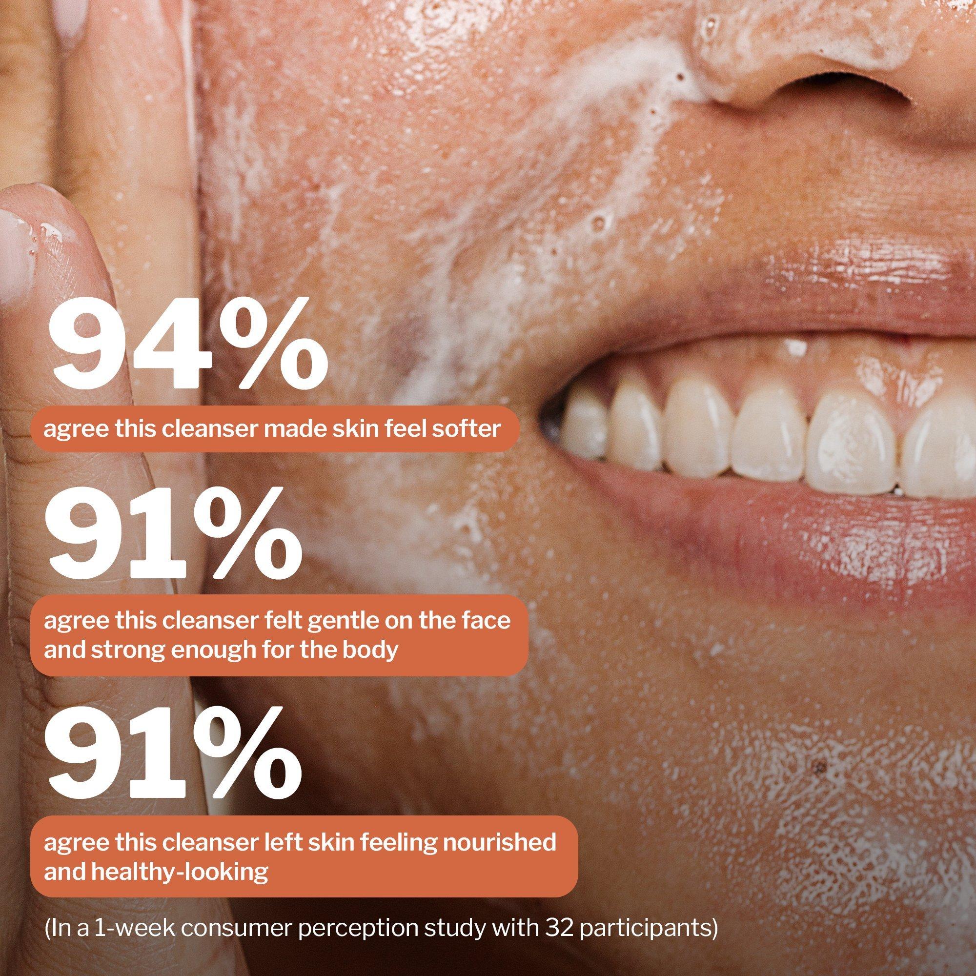 • A face-quality cleanser in a body-size bottle - no need for two products