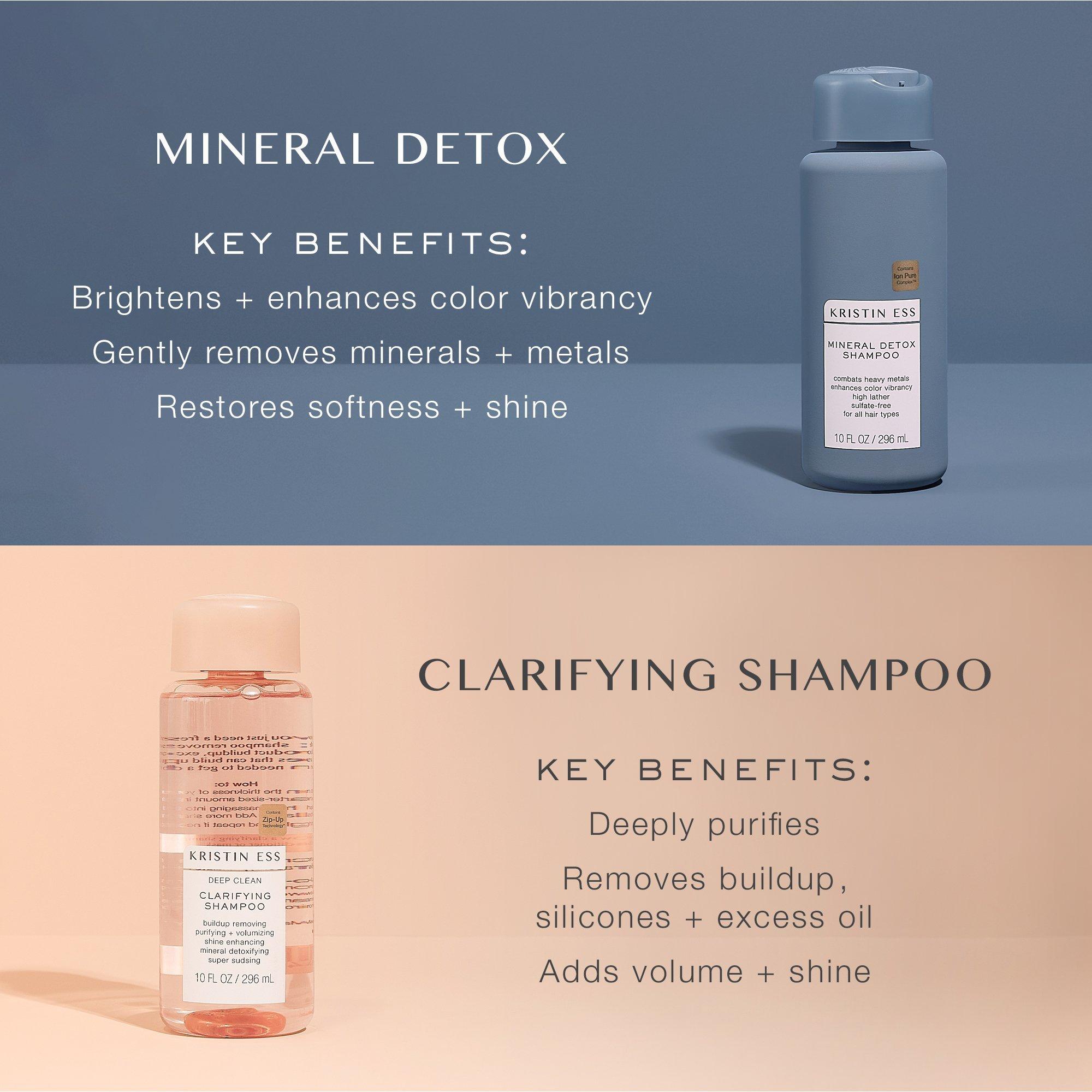 3. For best results, use with Kristin Ess Mineral Detox Pre-Shampoo Rinse as a once a week treatment and follow with Mineral Detox Conditioner.