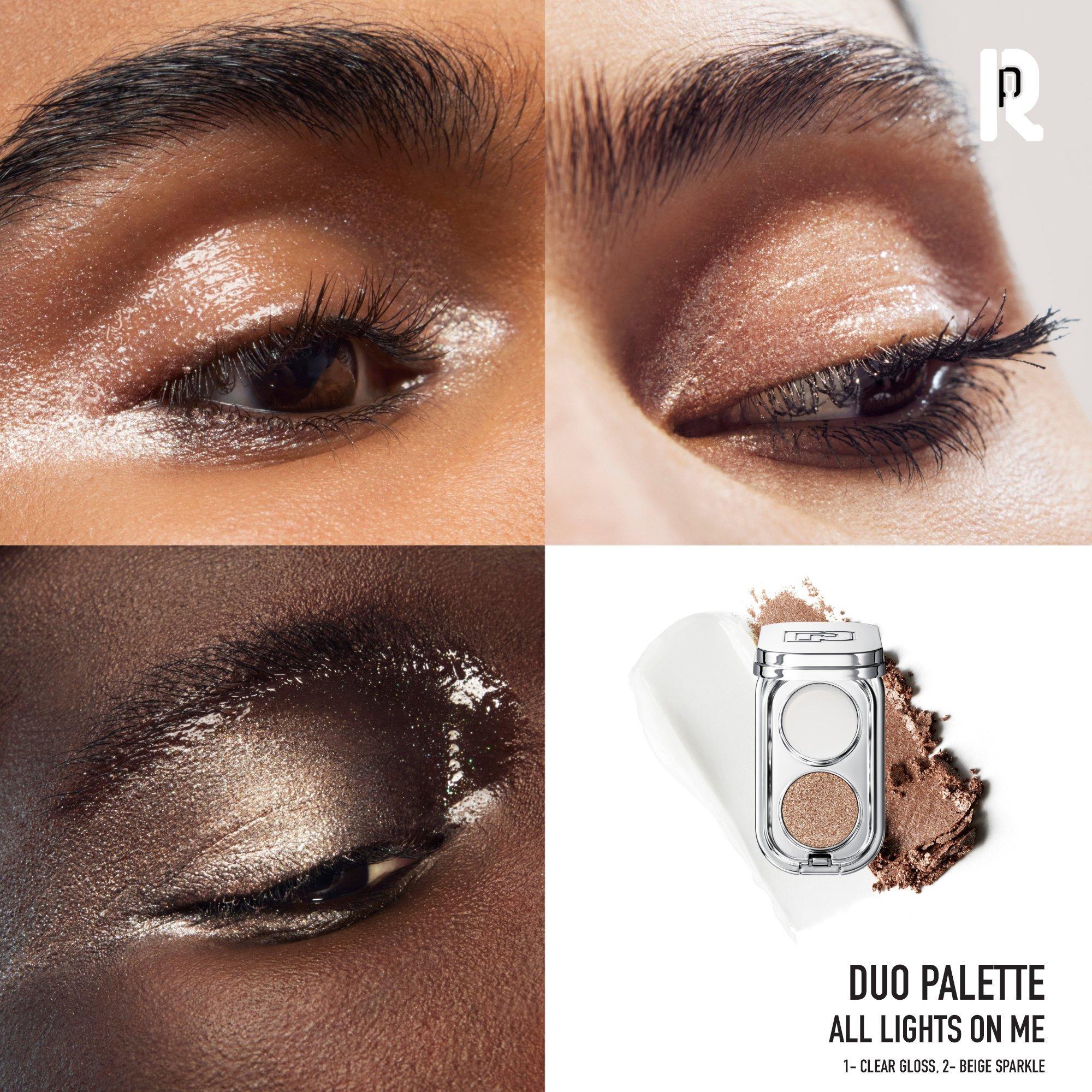 Made to play with colors, the Mini Eyeshadow Palette Duo by Rabanne reinvents the powder experience with multi-finish and multi-sensorially duo eyeshadows, highly pigmented in one-stroke and four second skin feeling textures: matte leather, metal foil, sparkling luster & gloss vinyl.