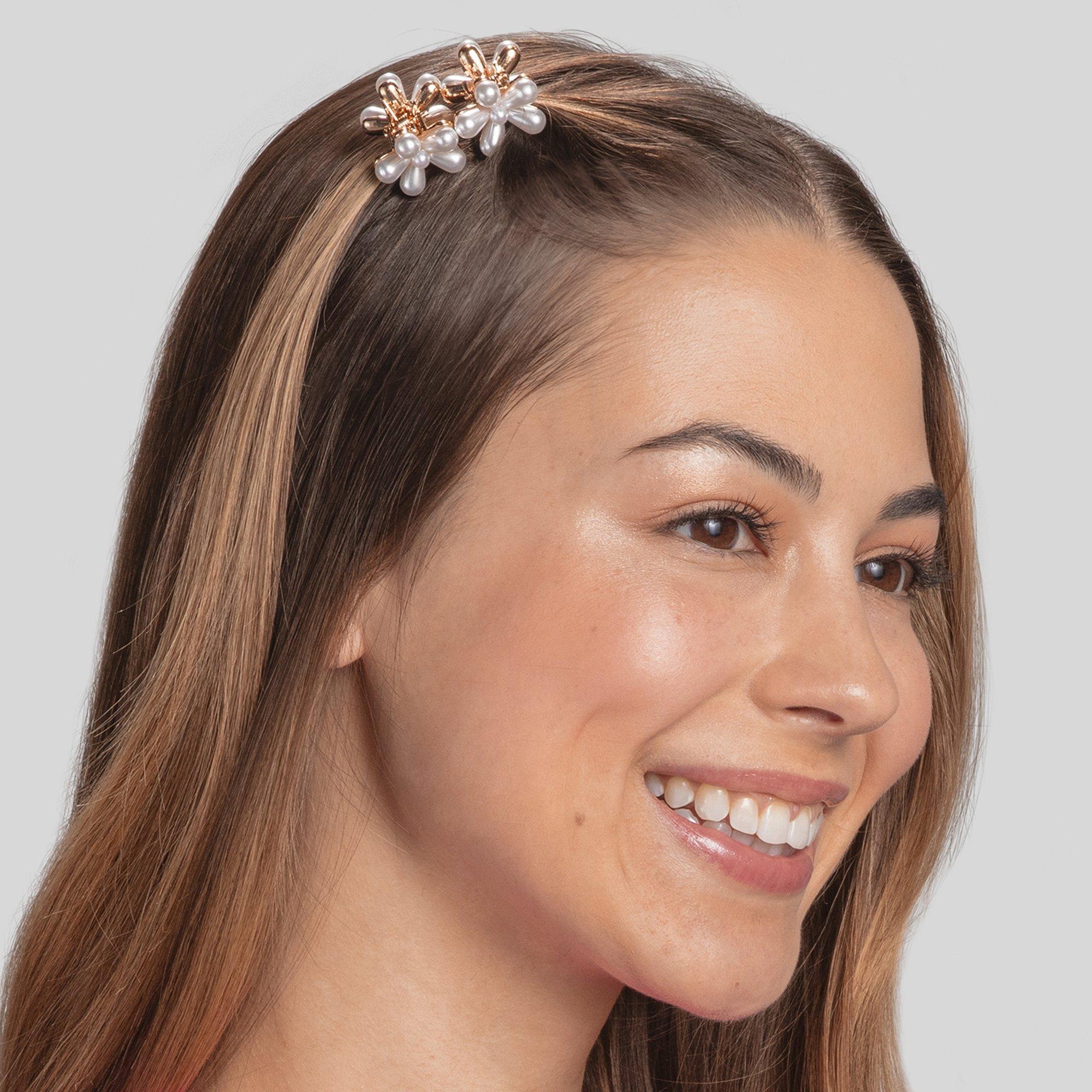 Conair mini pearlized claw clips help hold hair in place with a smooth, glossy look. An easy way to elevate hairstyles.