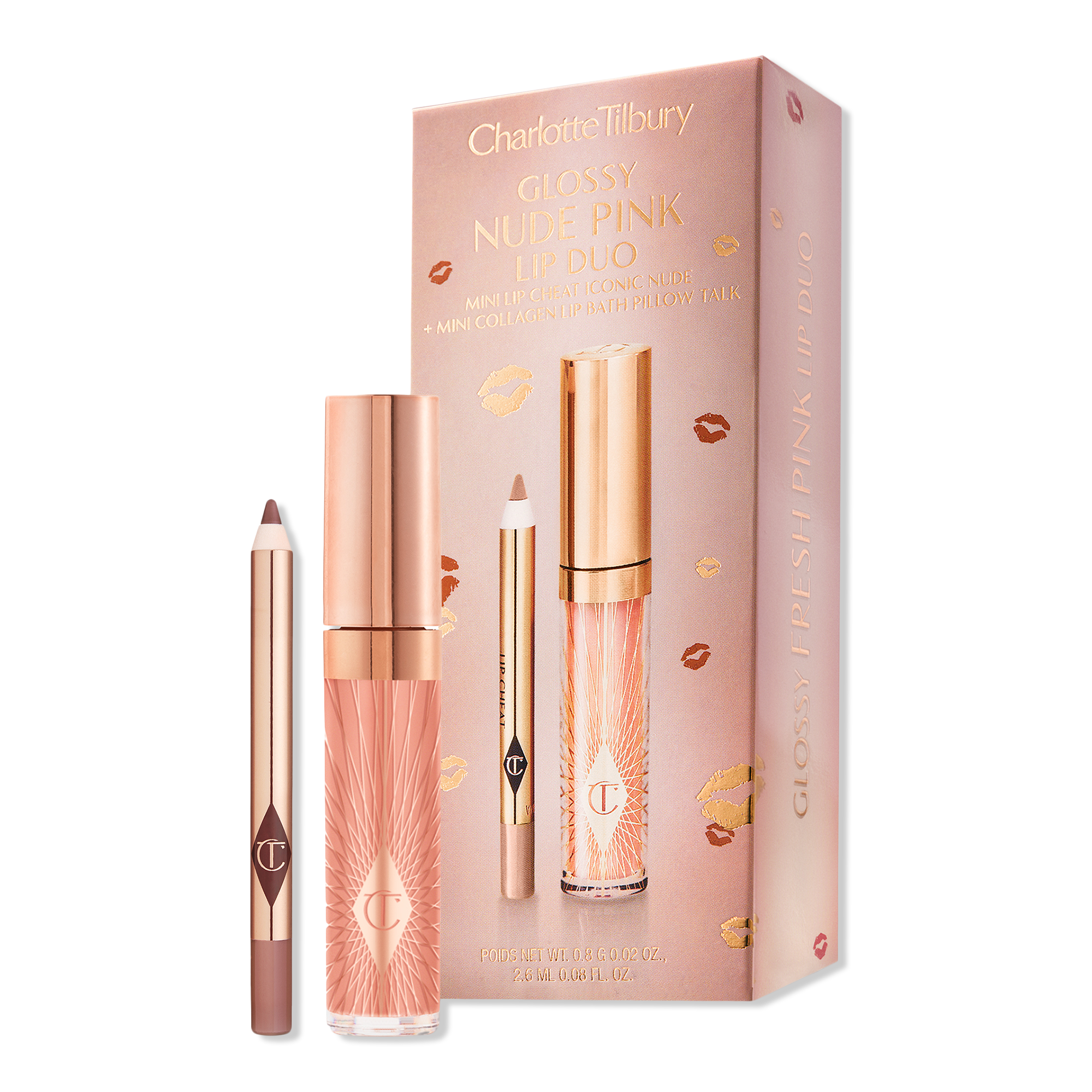 Charlotte Tilbury's Mini Glossy Pink Lip Gloss + Lip Liner Set includes an iconic, mini Lip Cheat Lip Liner and mini Collagen Lip Bath Gloss - the perfect pair for contoured, fuller-looking lips with a high-shine finish.