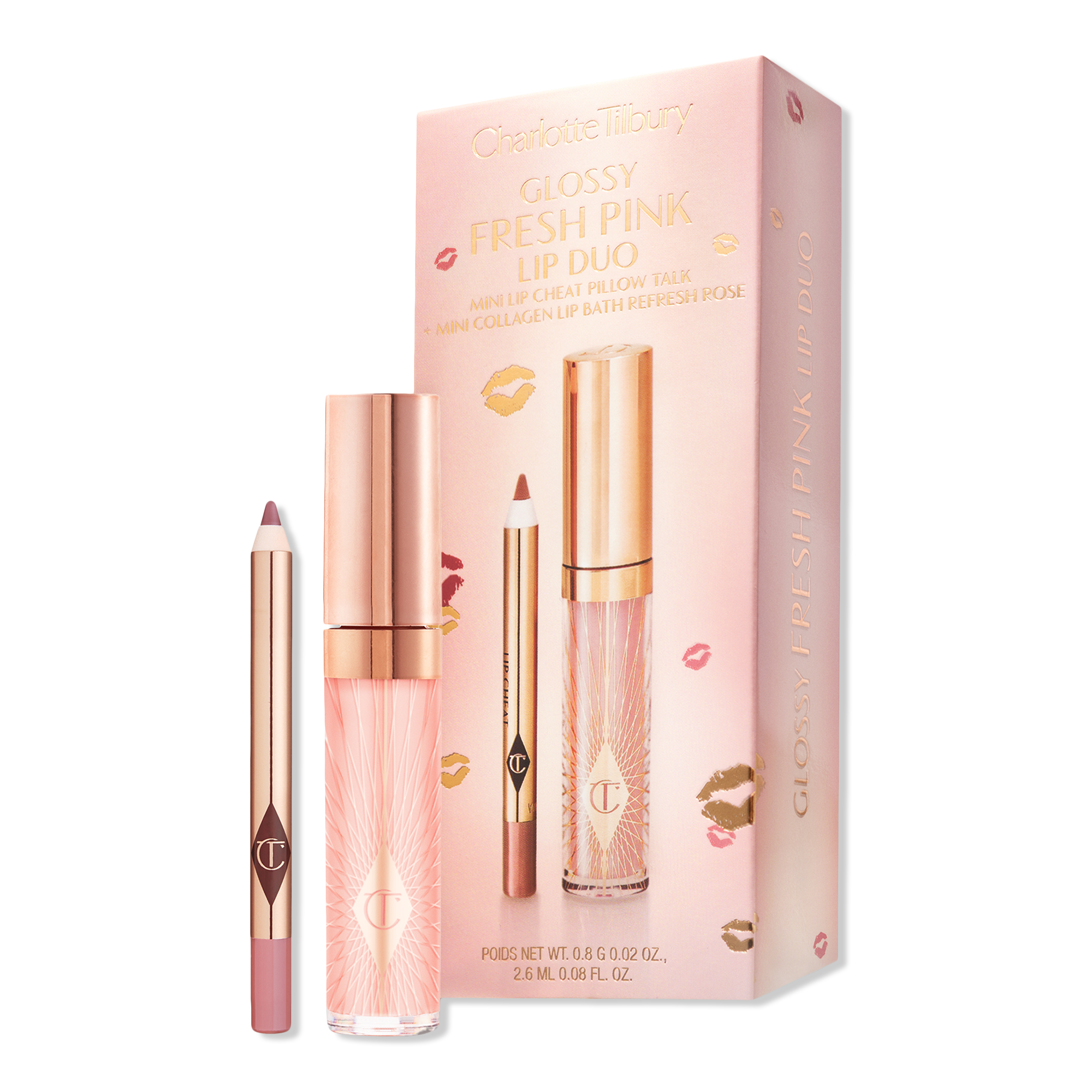 Charlotte Tilbury's Mini Glossy Pink Lip Gloss + Lip Liner Set includes an iconic, mini Lip Cheat Lip Liner and mini Collagen Lip Bath Gloss - the perfect pair for contoured, fuller-looking lips with a high-shine finish.