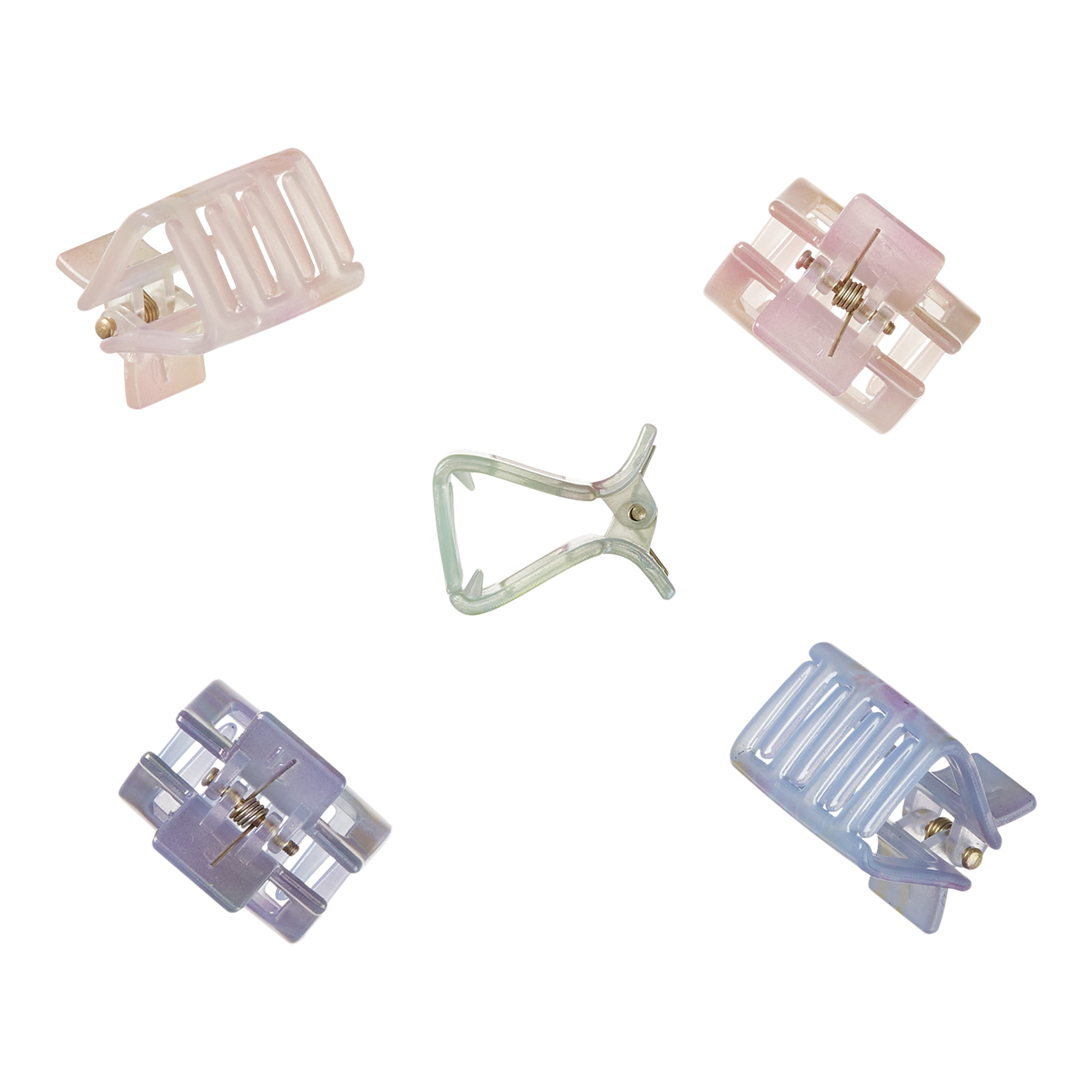 These Scünci Mini Open Cut Claw Clips are all about style! Pink, green, and purple with an open-cut design perfect for keeping small sections of hair in place.