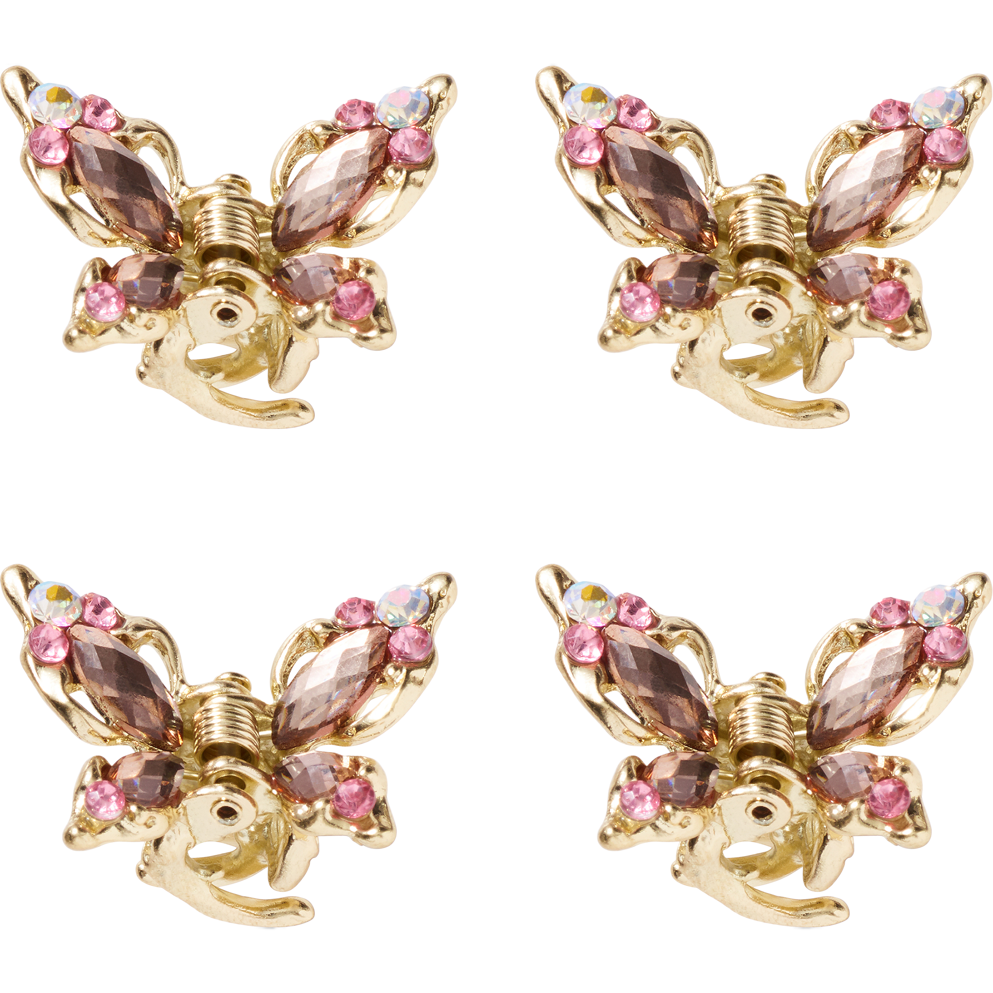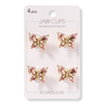 Place a pretty Butterfly-Shaped Jaw Clip in your hair for a nature-inspired look. 4 Scünci Elite gold-tone clips with light pink stones. Medium hold.