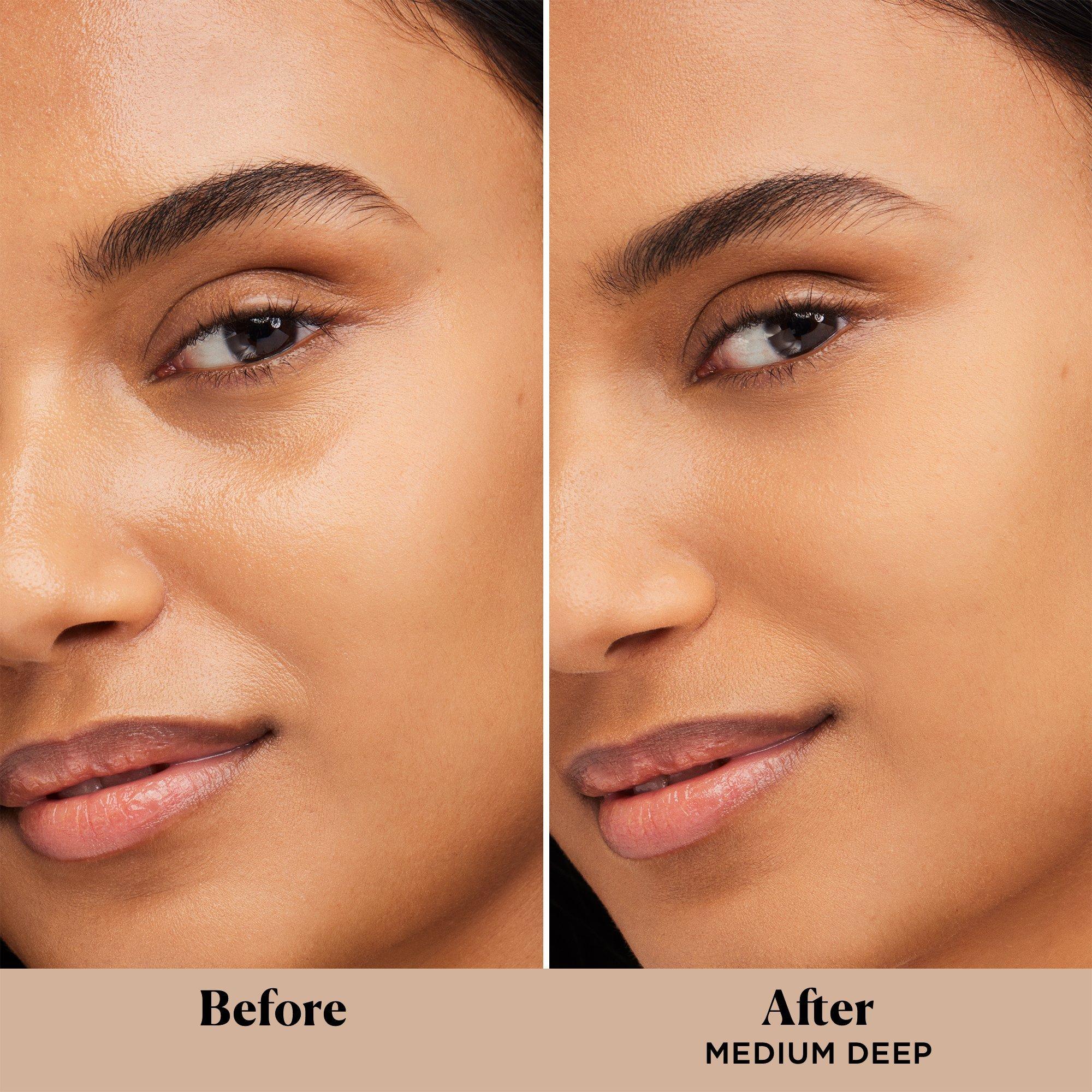 Pro-Tips: For brightening for light to medium skin tones, apply Translucent Loose Setting Powder Ultra-Blur Tone-Up to the high points of the face (undereye, tops of cheek bones, chin, jawline, center of forehead). For medium-deep to deep skin tones, apply Translucent Loose Setting Powder Ultra-Blur Honey to the high points of the face to brighten.