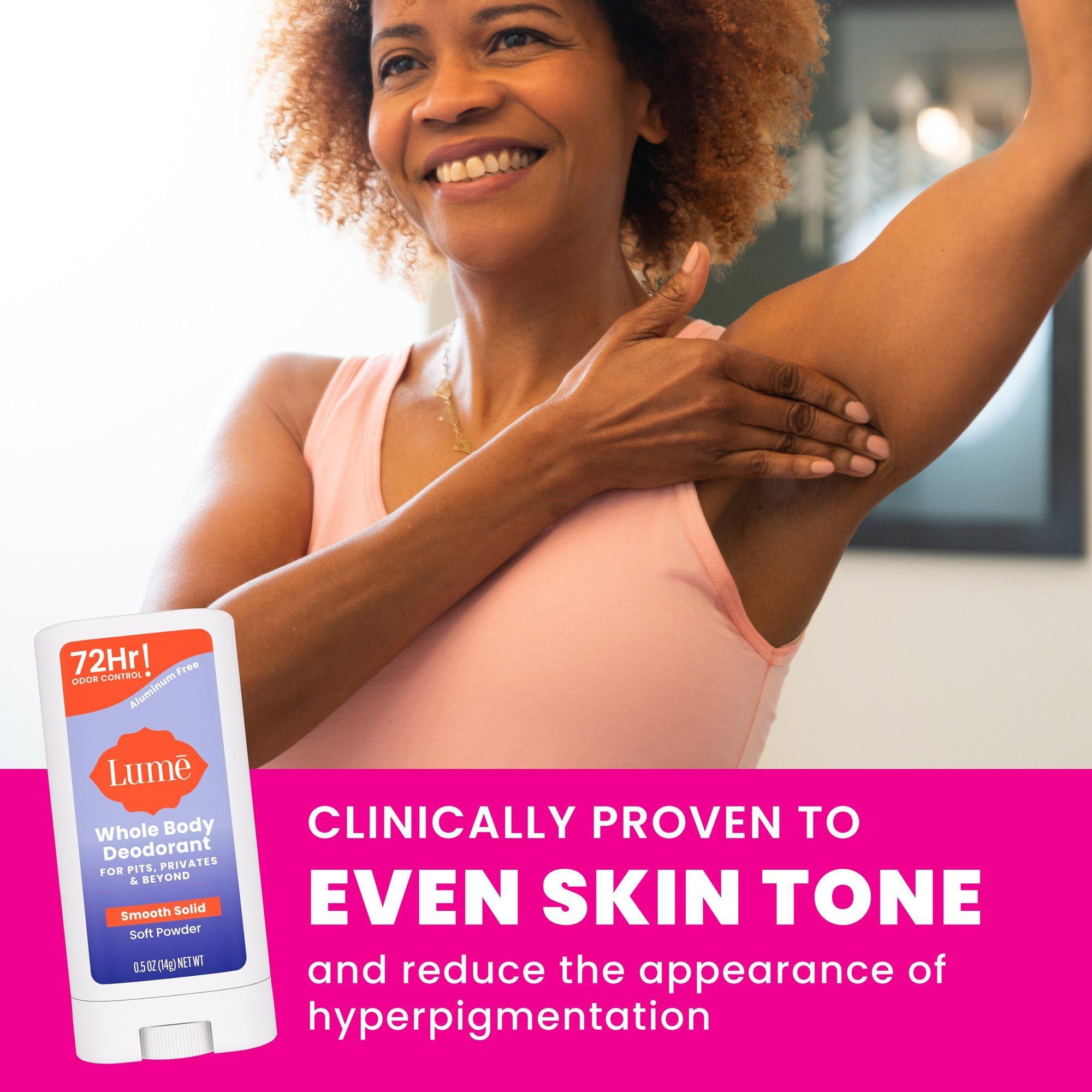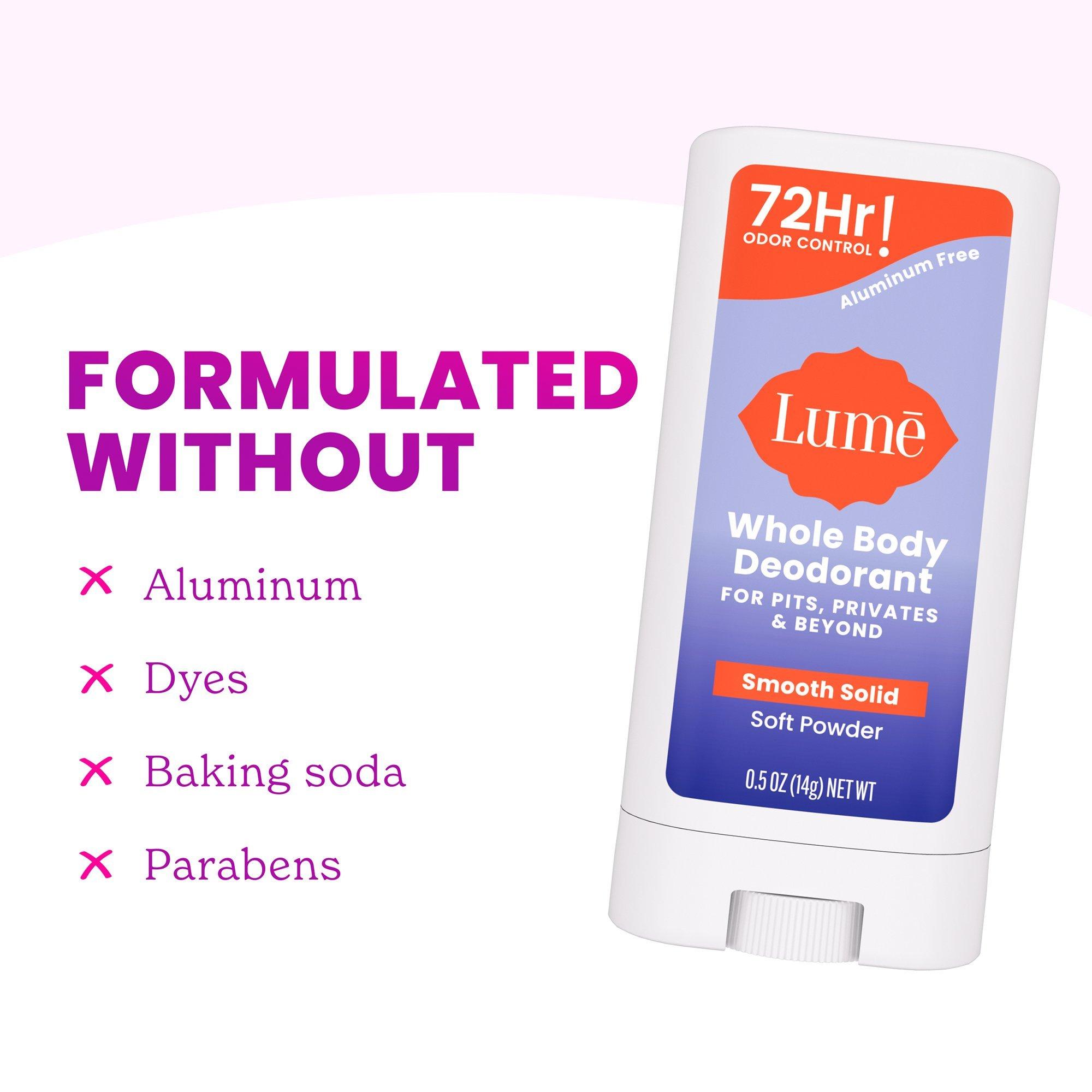 Smell better everywhere with Lume Whole Body Deodorant Smooth Solid for Pits, Privates and Beyond. Armpits aren’t the only place we have odor, and Lume Deodorant is uniquely made to control ALL external body odor.