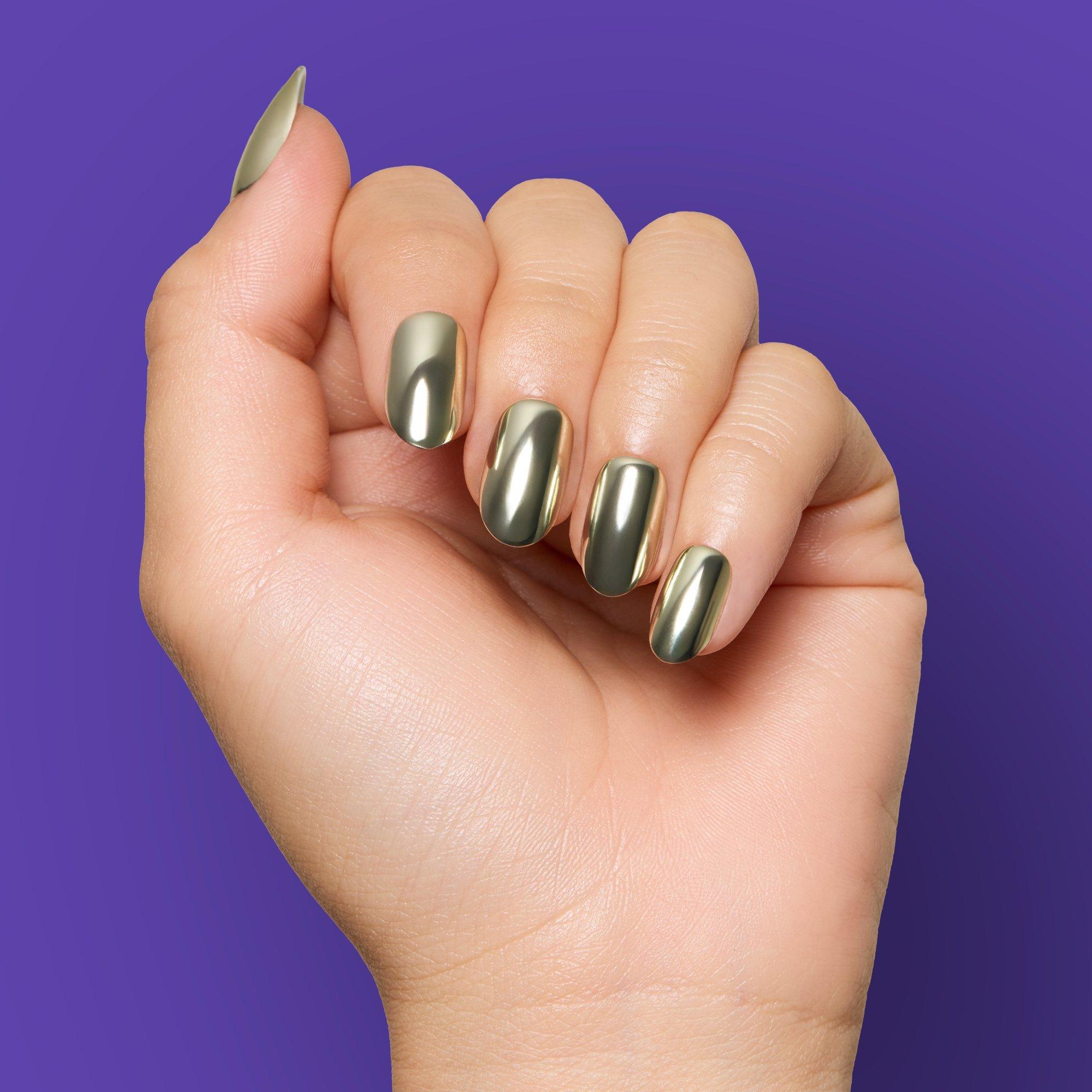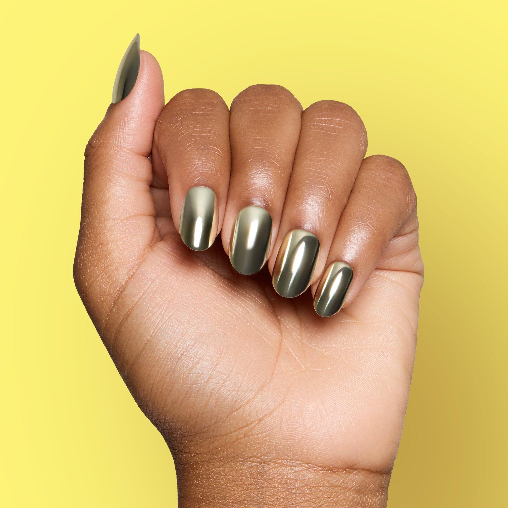 Now this is mint condition. DIGI by Glamnetic’s Minted Press-On Nails take jewelry nails to a new level with sleek, mint green manis with a metallic, mirror-like finish (similar to Ice Cold press-ons). It’s effortlessly cool in a short oval shape, with a quick, 5-minute application.