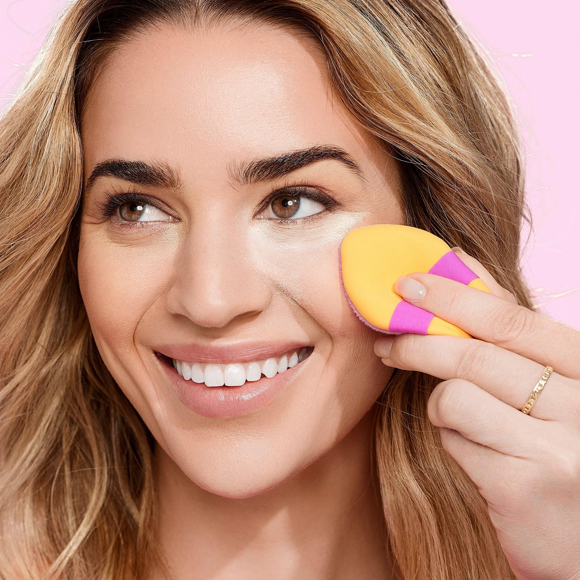 The Real Techniques Miracle 2-In-1 Dual Sided Powder Puff is a multipurpose puff designed to work with powders, liquids, and creams for a soft, seamless base.