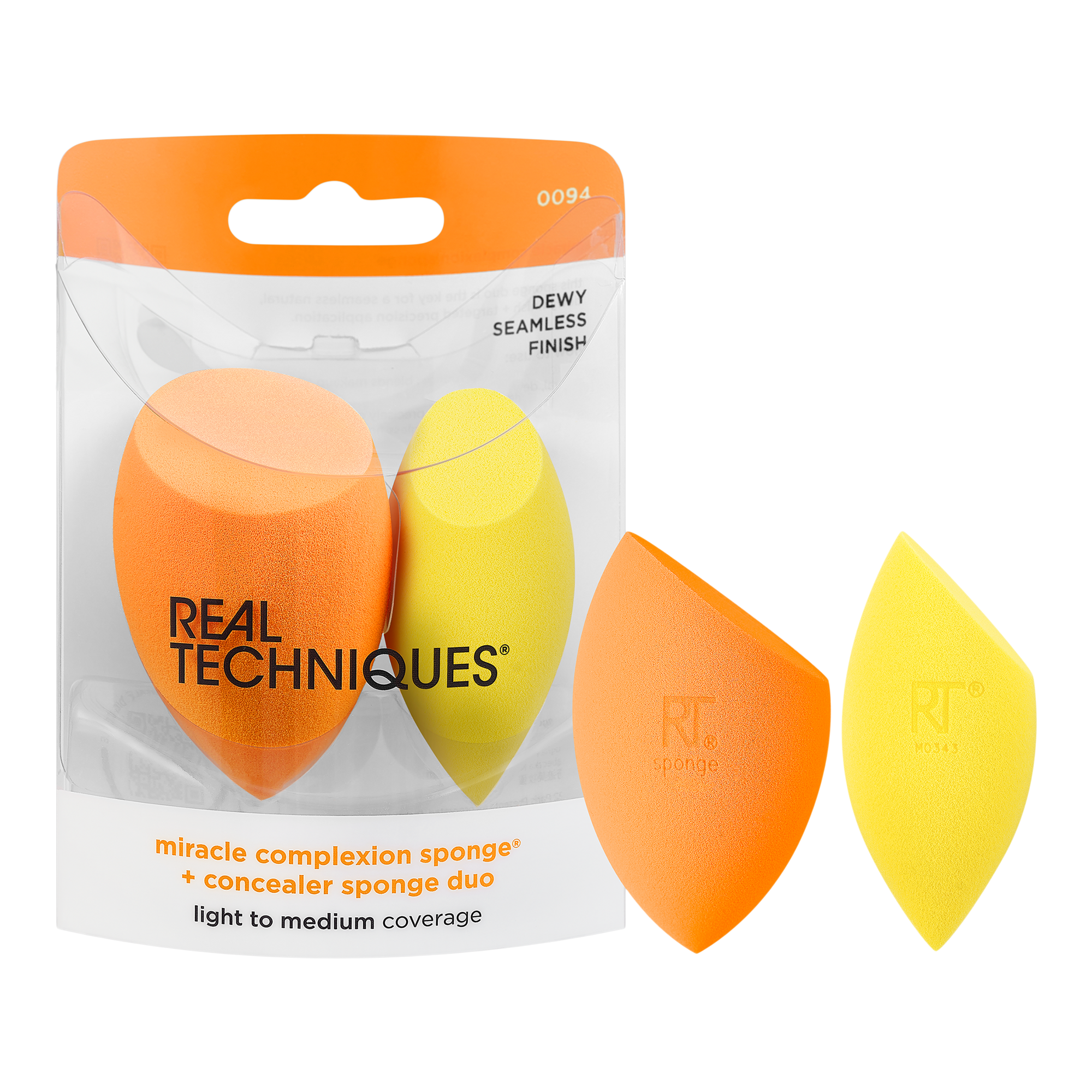 The Real Techniques Miracle Complexion Sponge + Concealer Sponge Duo is key for a seamless natural, dewy finish and targeted precision application. This duo brings together the iconic MCS for a dewy base and the Miracle Concealer Sponge for a lifted finish.