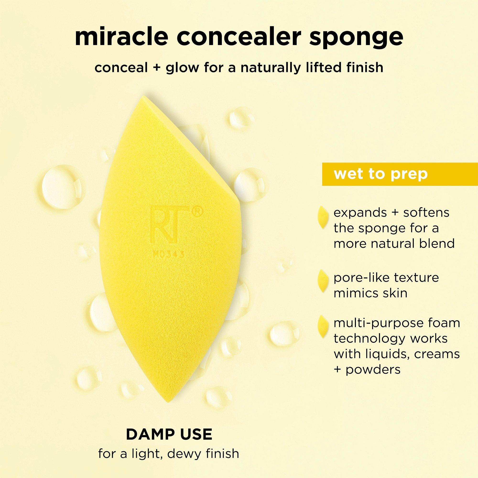 The Real Techniques Miracle Concealer Sponge helps blend and cover to brighten undereyes or conceal blemishes for a natural, seamless finish.