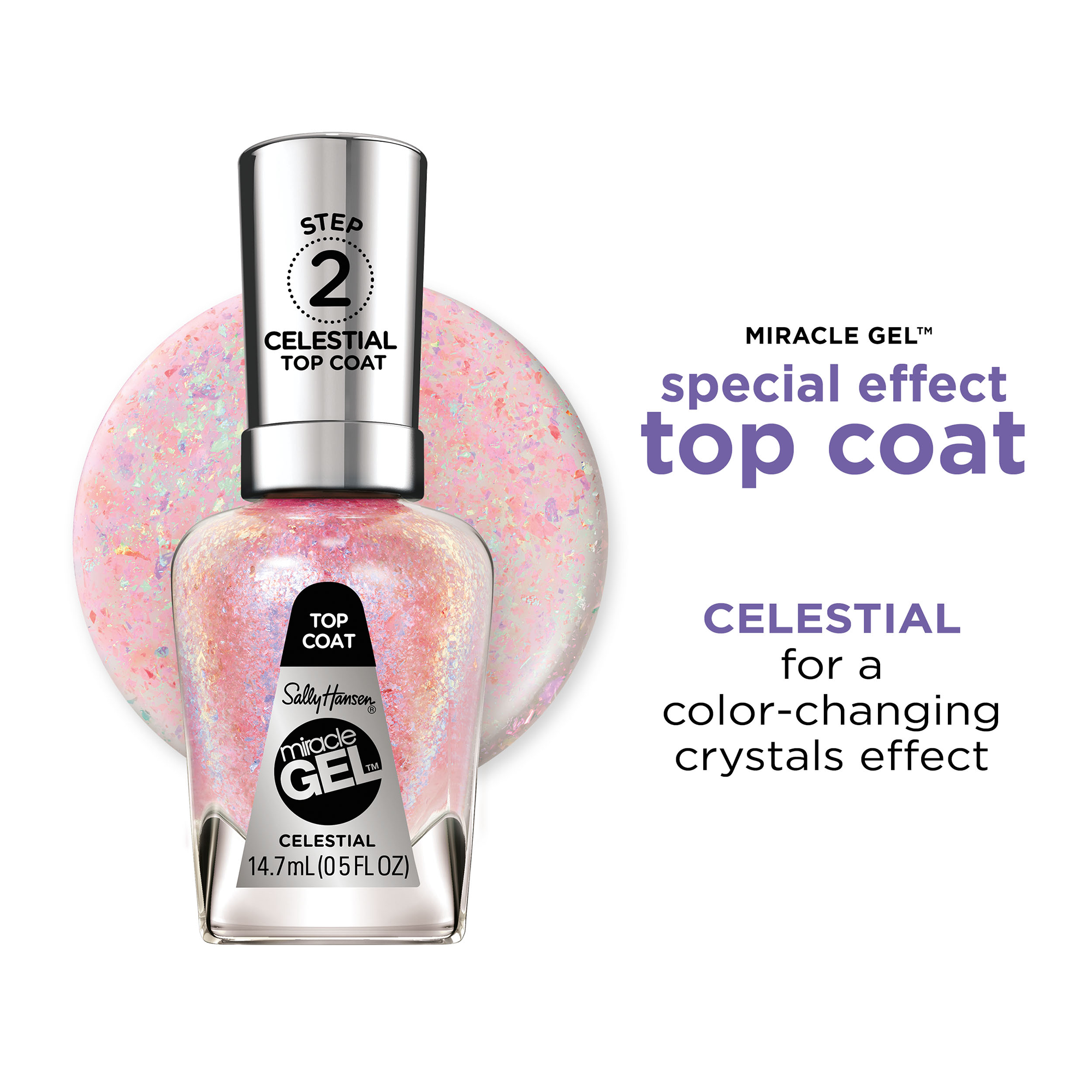 Sally Hansen Miracle Gel Special Effects Top Coats level up your manicure! Take your favorite nail polish and top it off with one of these color-shifting effects. Mix, match, and customize your manicure.