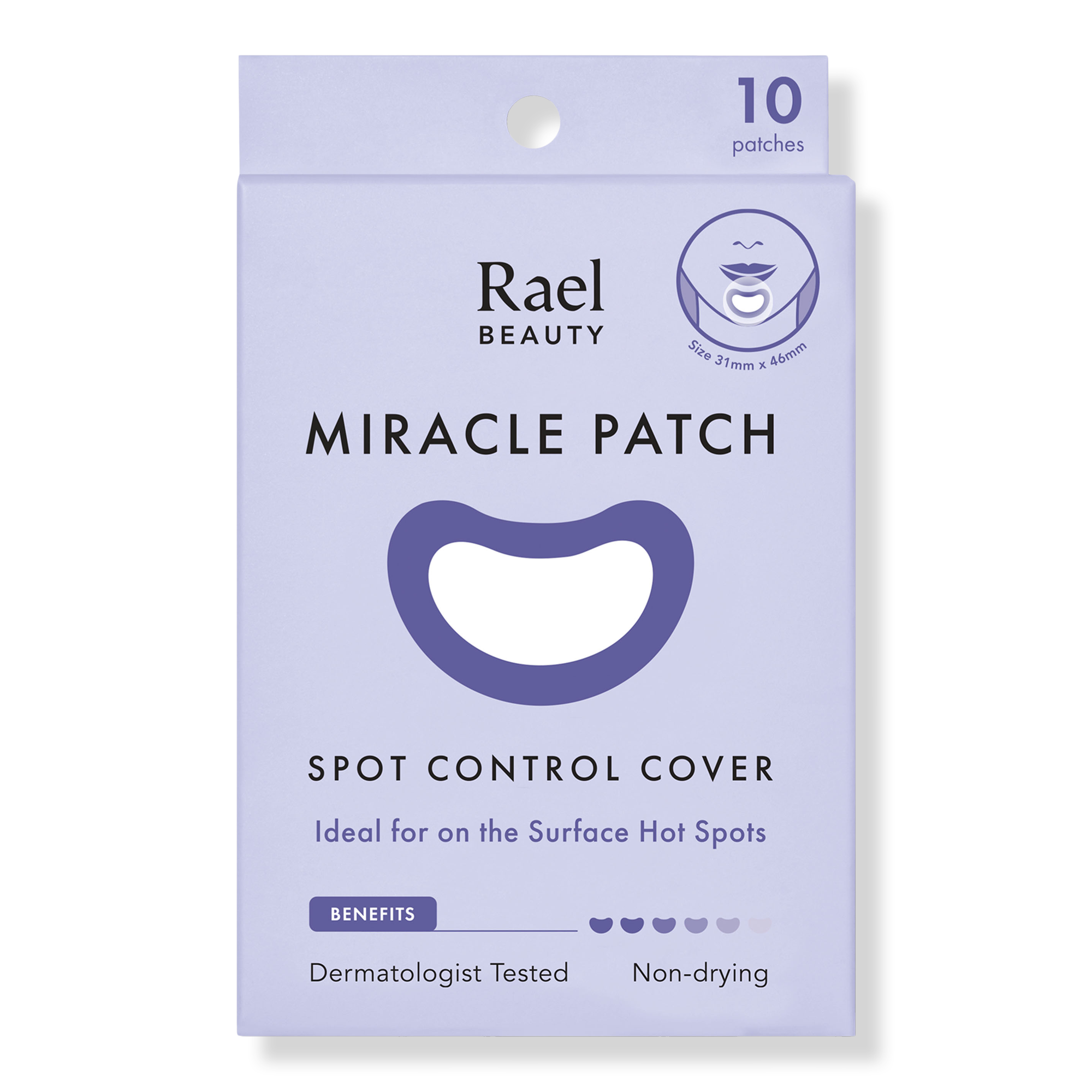 Rael's Miracle Patch Spot Control Cover tackle all your acne hot spots. Hydrocolloid patches with an extra-large, contour shape ensure a secure fit over your cheeks, nose, and chin.