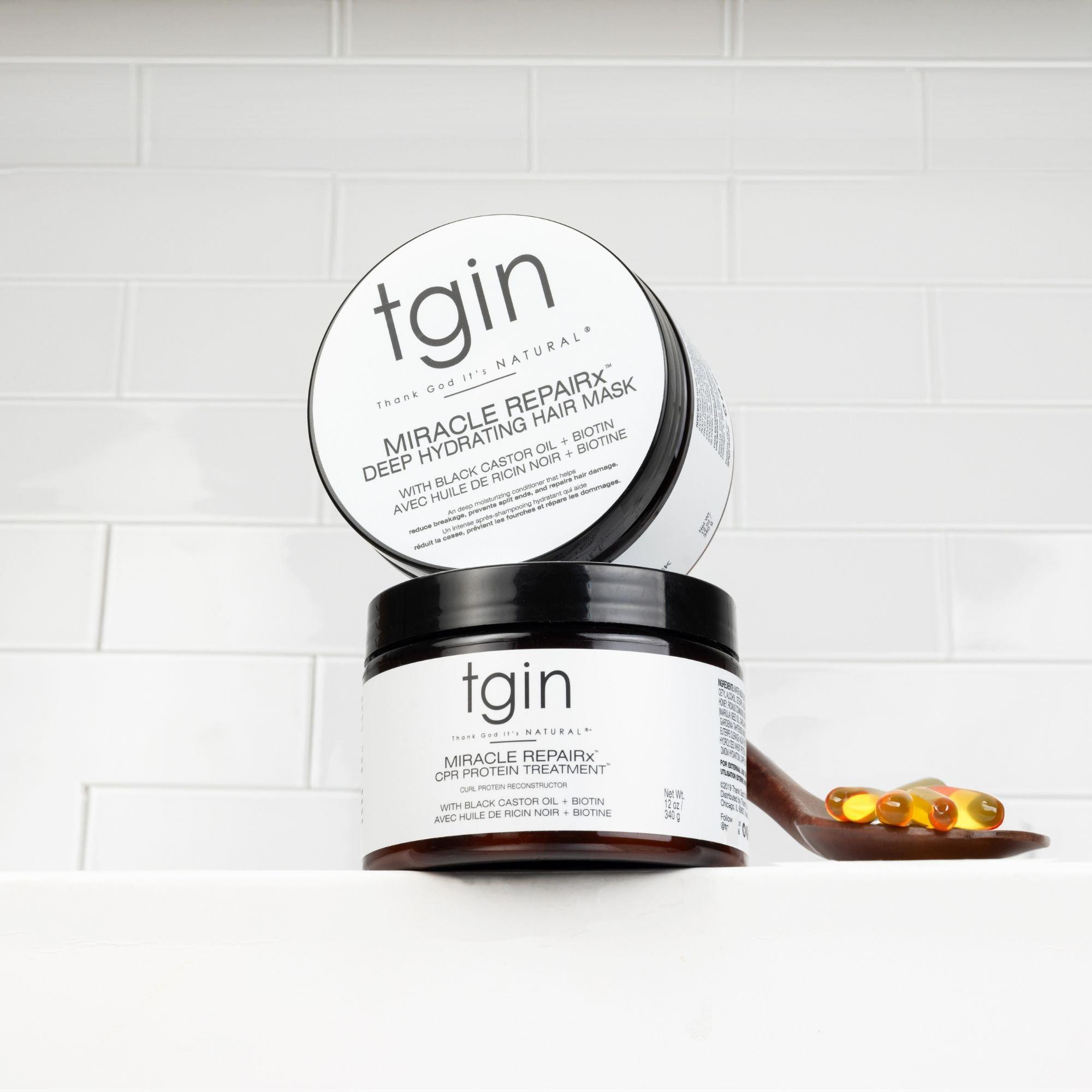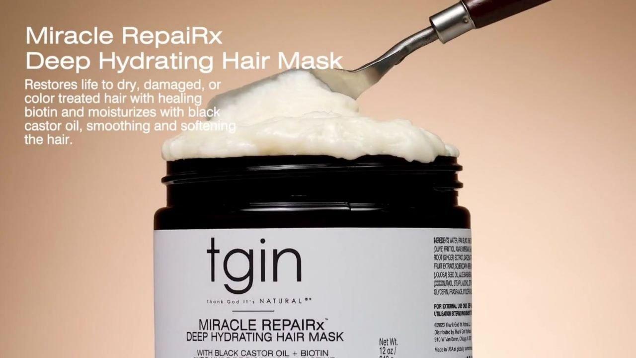 The Tgin Miracle RepaiRx Deep Hydrating Hair Mask restores life to dry, damaged, or color-treated hair, smoothing and softening the hair. Improves shine and manageability, locks in moisture and repairs damage, while reducing shedding and breakage.