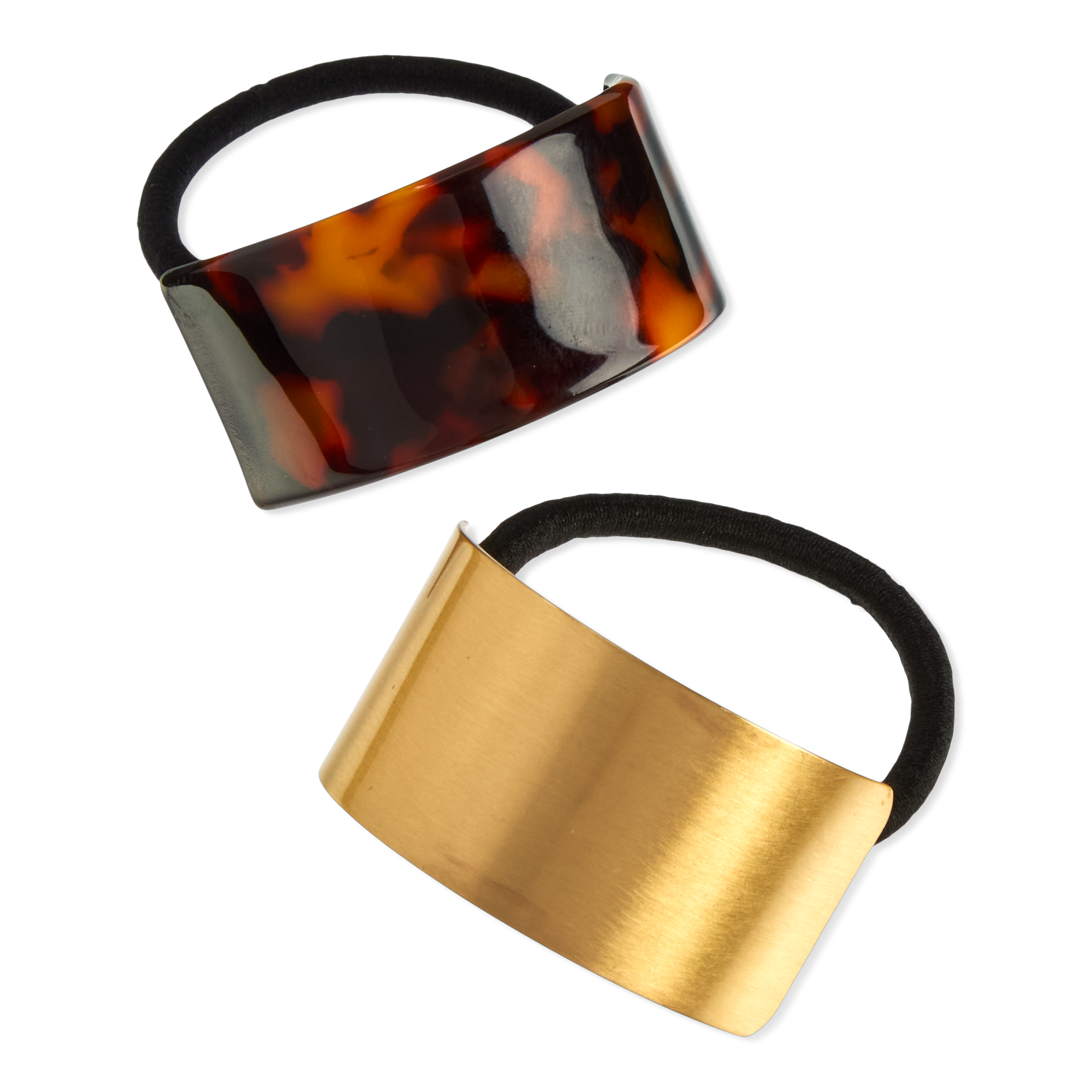 Instantly upgrade any ponytail with this 2-pack of chic Conair Mixed Hair Tie Cuffs—one tortoiseshell finish, one gold tone. Slip on and secure for a polished, effortlessly elegant finish.