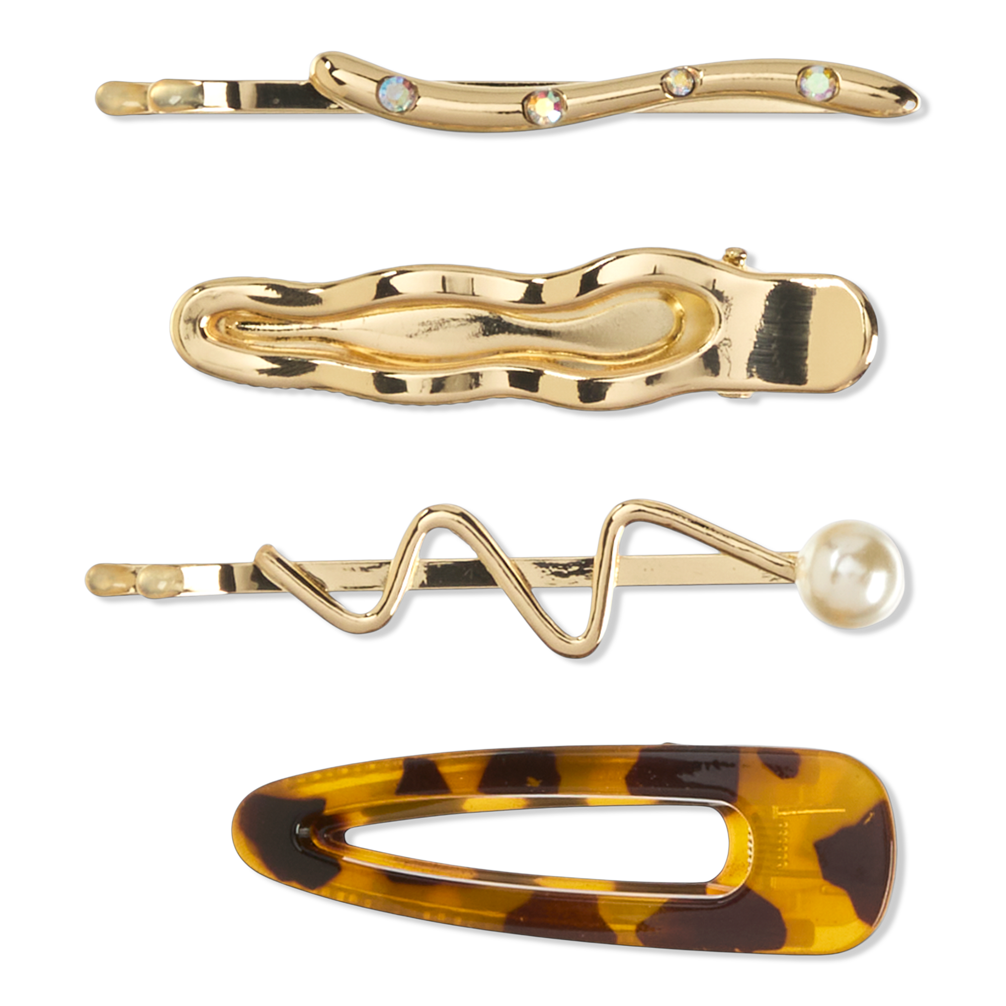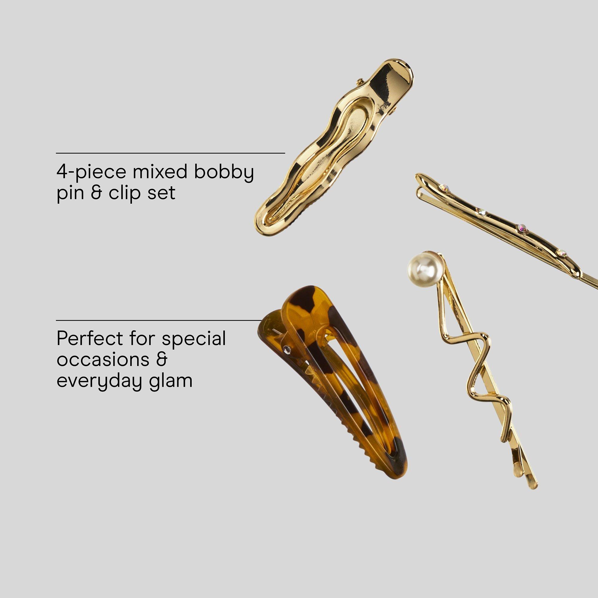 The kind of hair pins and clips that make you feel put together without trying. This Conair 4-pack mixed pin set combines gold-tone finishes with classic tortoiseshell pattern for styling that feels effortless and cool.