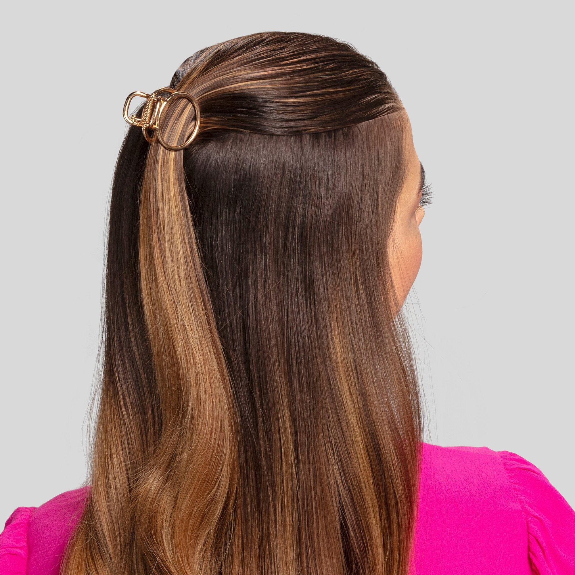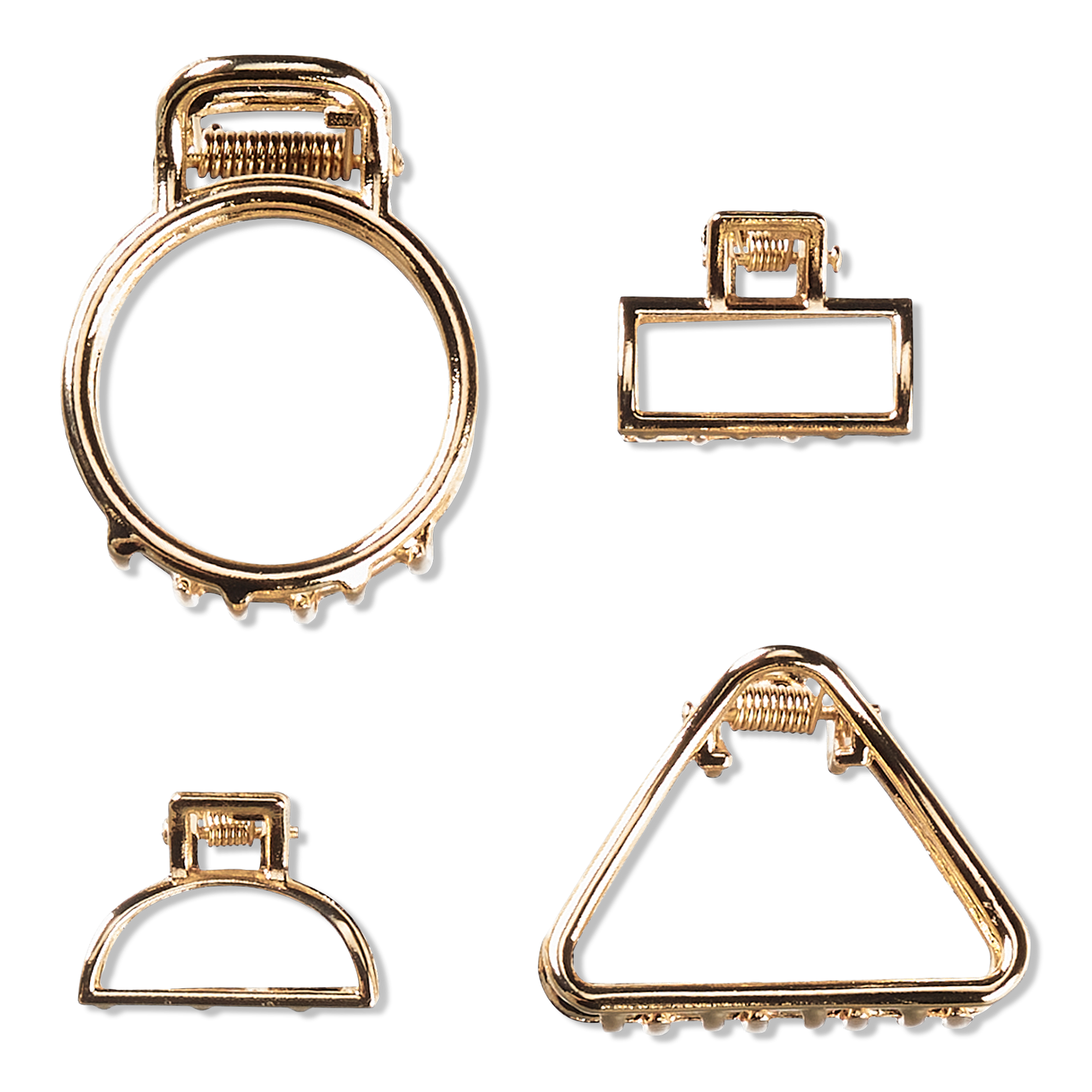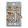 This set of shimmering Conair gold-tone metal claw clips features 4 trendy shapes and sizes. Made to be mixed and matched, each clip has the perfect hold for keeping twists, half-up, half-down styles, and smaller sections of hair perfectly in place.