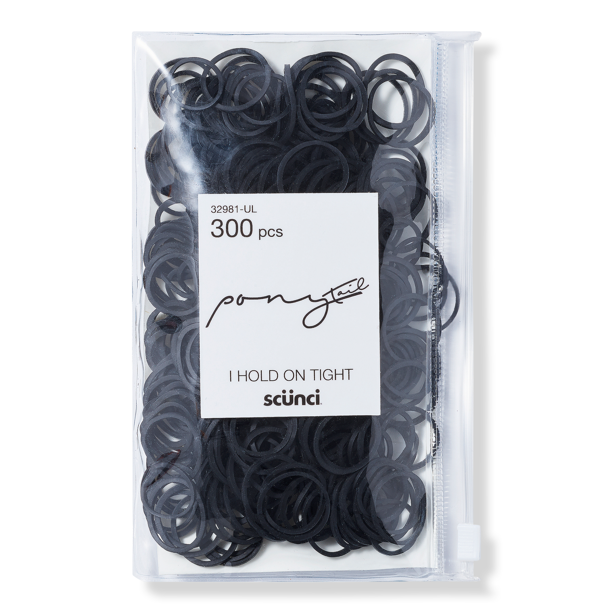 Pick from the pack of 300 Multi-Sized Scünci Rubber Bands that are perfect for securing small braids or ponies.