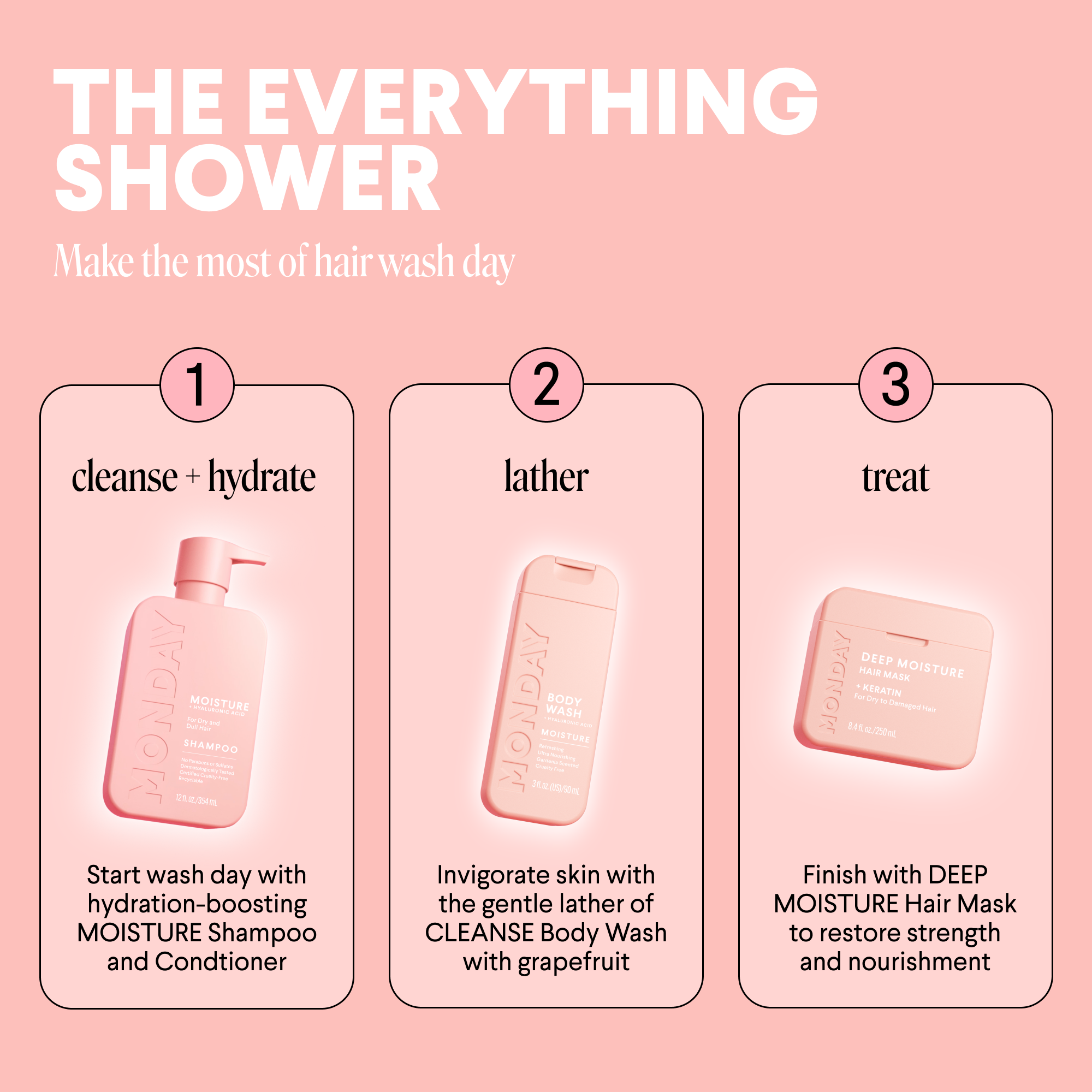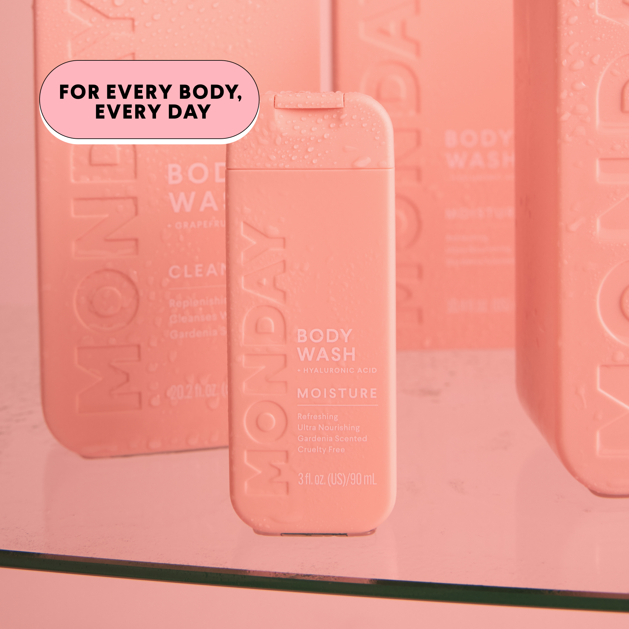 Infused with a blend of Hyaluronic Acid, Shea Butter, Coconut Oil and Grapefruit Extract, MONDAY's MOISTURE Body Wash works to deeply hydrate and invigorate skin, leaving it feeling soft and rejuvenated.