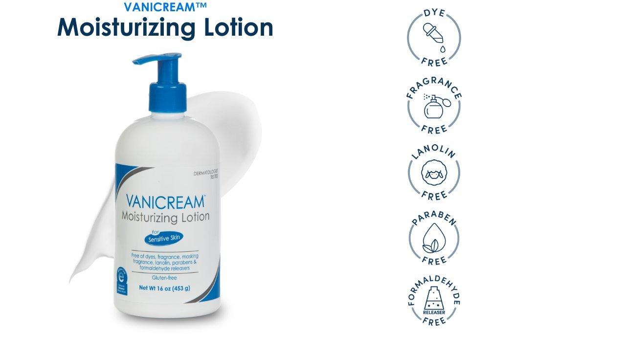 Vanicream Moisturizing Lotion with Pump for Sensitive Skin helps restore and maintain a normal moisture level and soothes red, irritated, cracking, or itchy skin. Ideal moisturizing formula for dry skin associated with atopic dermatitis (eczema), psoriasis, ichthyosis, and winter itch.