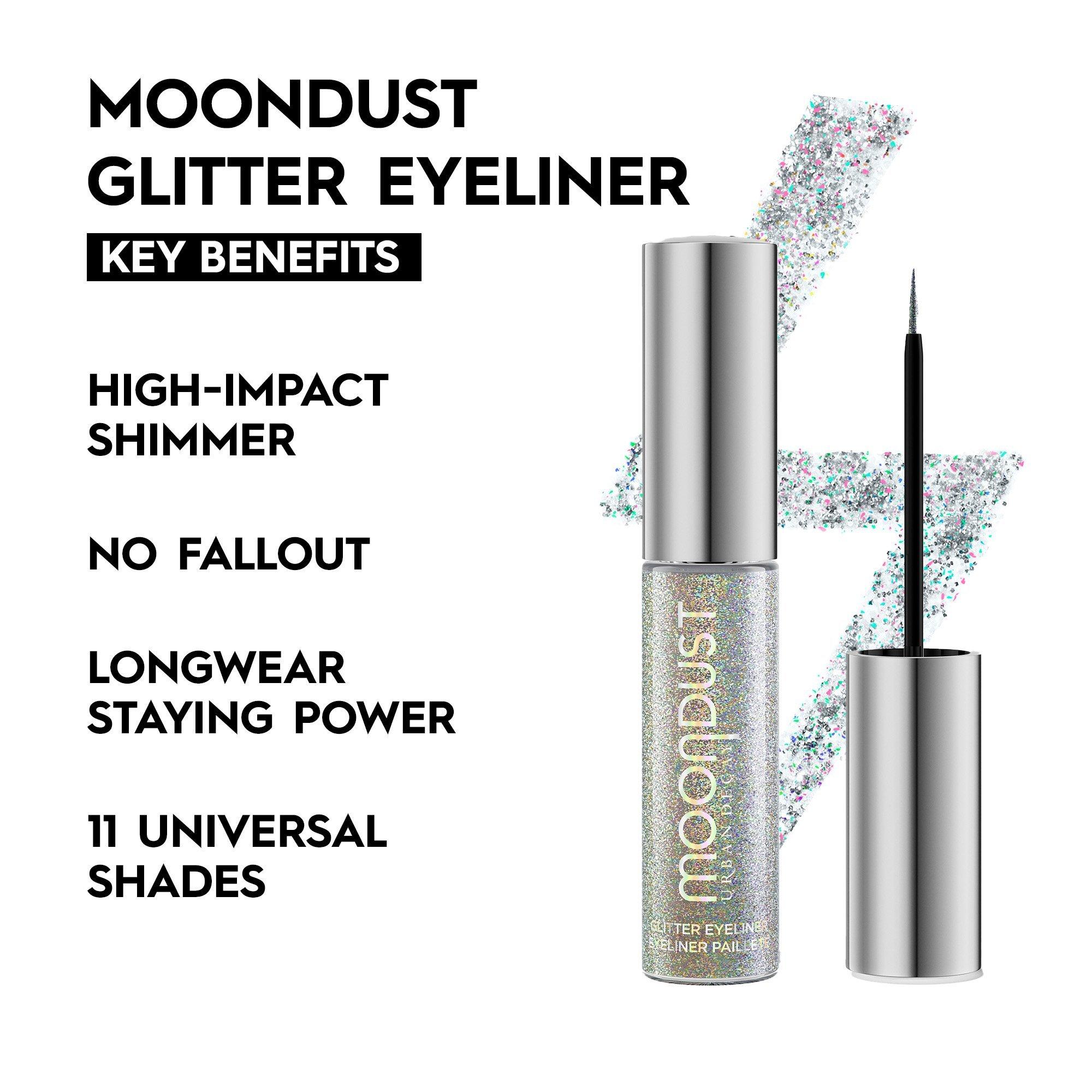 Urban Decay Moondust Liquid Glitter Eyeliner is a water-based liquid glitter liner that adds both sparkle and high-impact shimmer to your eye makeup looks.