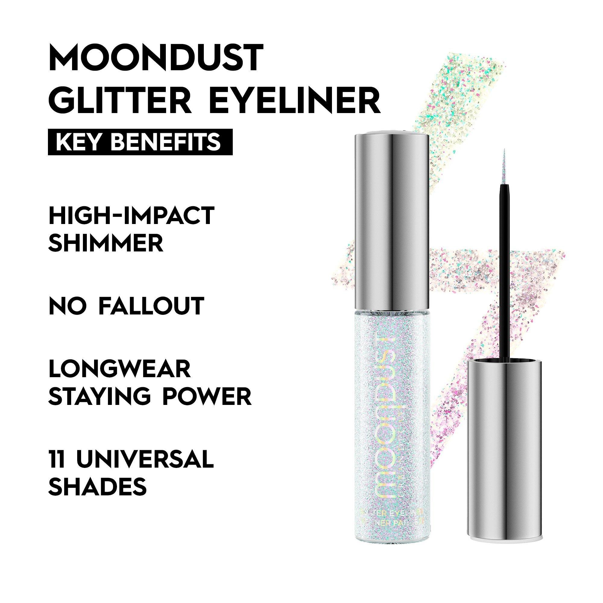 Urban Decay Moondust Liquid Glitter Eyeliner is a water-based liquid glitter liner that adds both sparkle and high-impact shimmer to your eye makeup looks.
