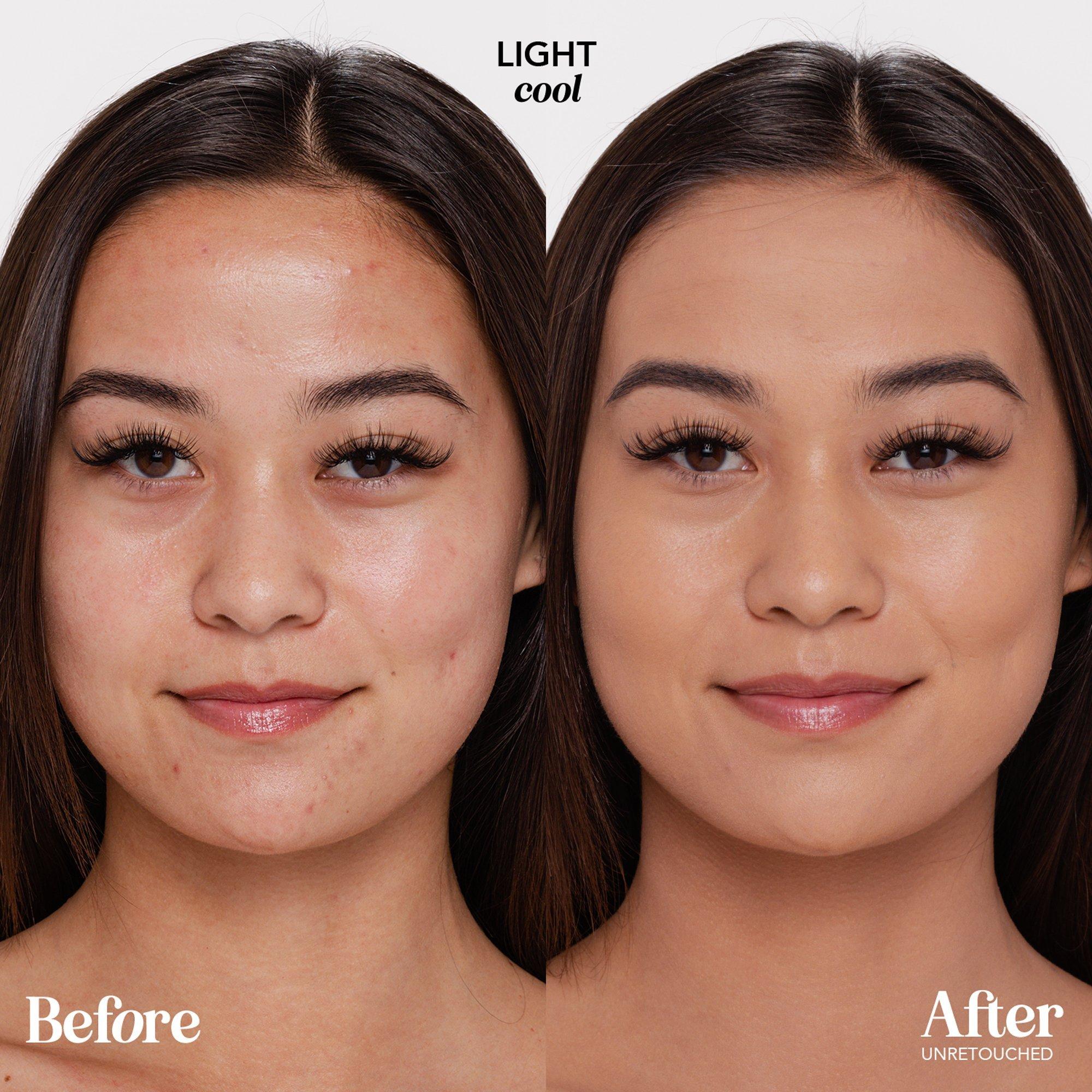 For a skin-tint-like coverage: Apply 1⁄2-1 pump using your fingers, a damp sponge, or a fluffy foundation brush, concentrating the product on the areas where more coverage is desired.