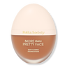 For medium to full coverage: Apply 1-2 pumps of More Than A Pretty Face Foundation using a damp sponge and press foundation into the skin, start at the center of the face or wherever the majority of coverage is desired, and blend outward. For more coverage, apply another pump using the same technique.