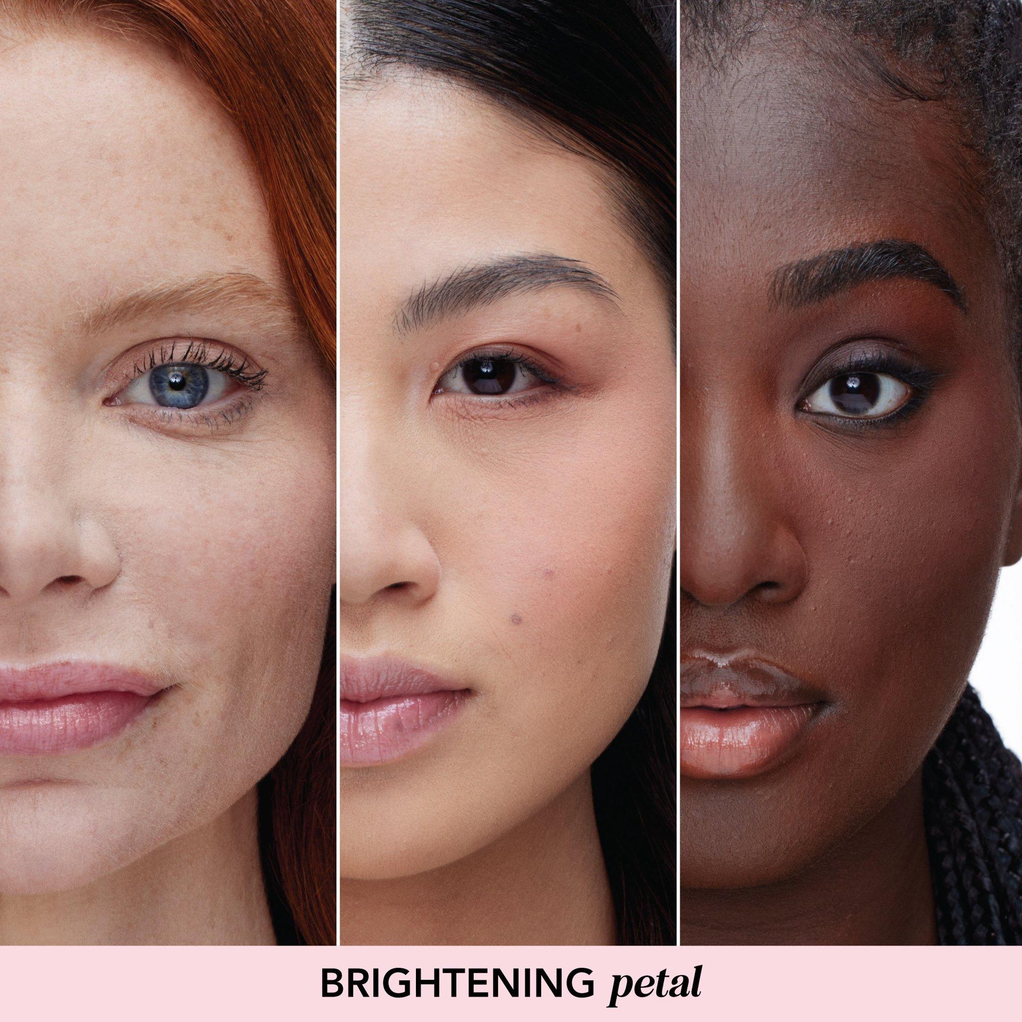 PS: Experiment using multiple shades! Dust Brightening Petal above cheekbones, bridge of the nose, center of forehead and cupid's bow for an extra lifting effect and then apply Brightening Peach under hollows of the check, lower jaw line and perimeter of the face to add warmth to the complexion.