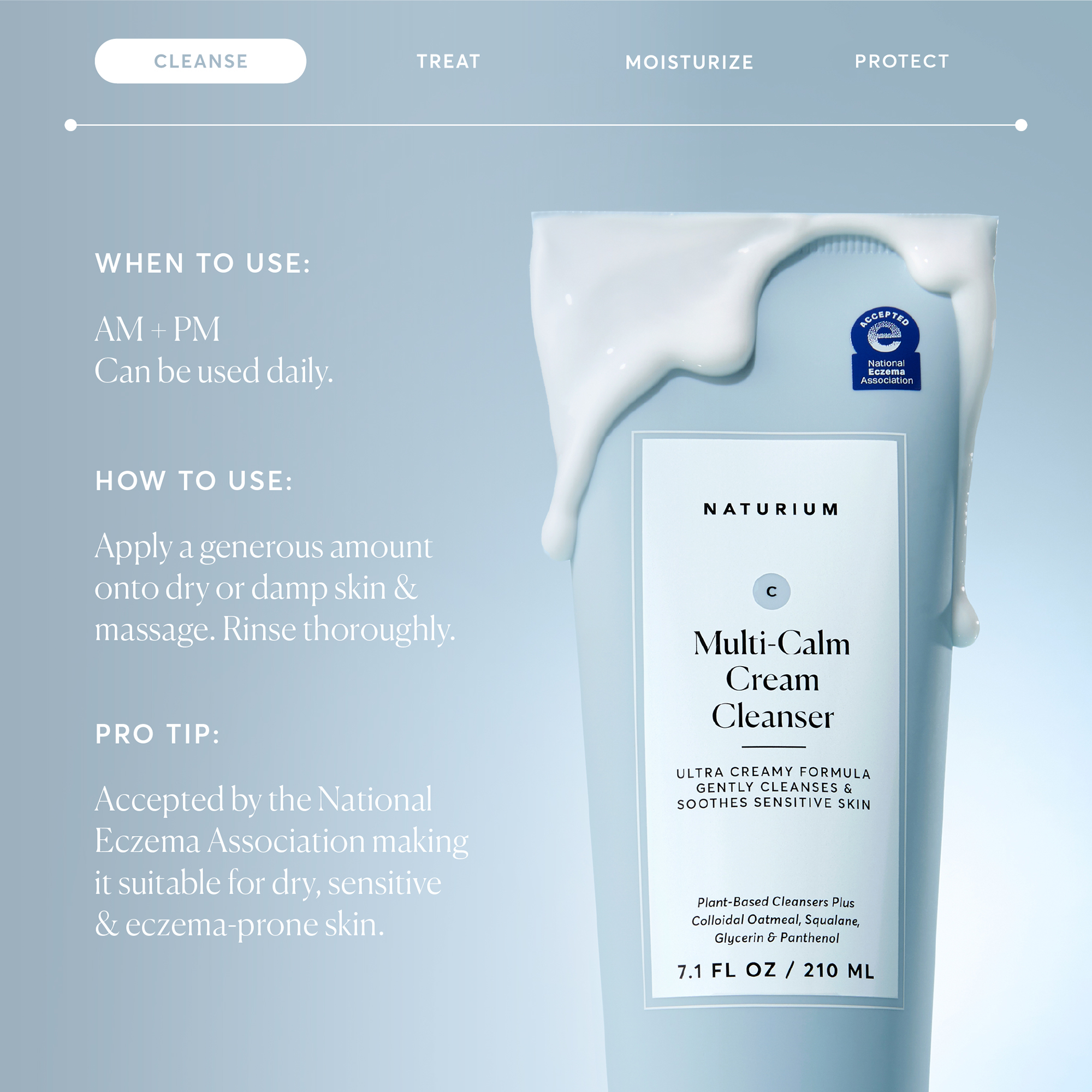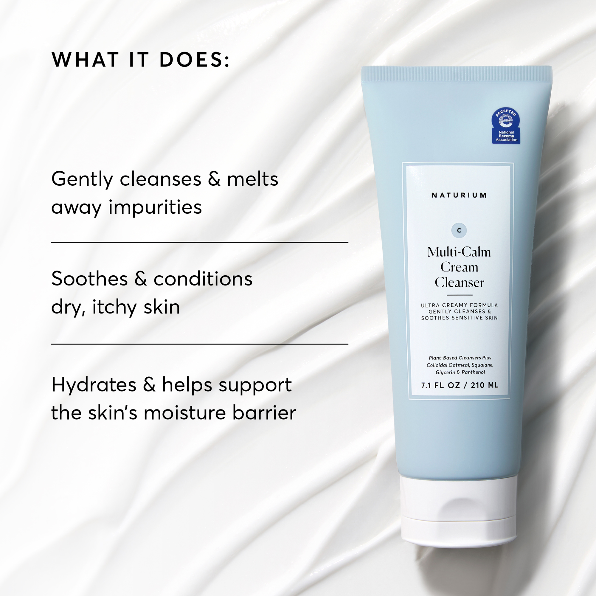 Naturium’s Multi-Calm Cream Cleanser is a rich, soothing cleanser formulated with colloidal oatmeal, glycerin, and plant-derived squalane to help reduce redness and deliver 24-hour hydration. It gently cleanses while calming and conditioning dry, sensitive, eczema-prone skin. Suitable for skin types