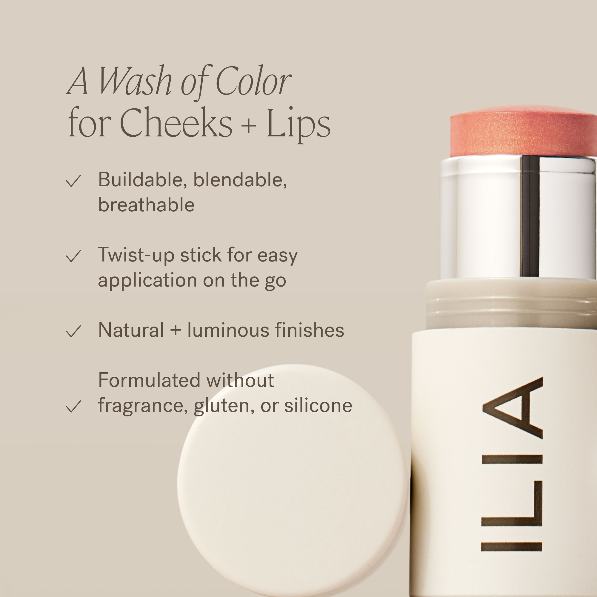 ILIA Multi-Stick is a buildable wash of color for cheeks and lips in 10 easy to apply, swipe-and-go shades.