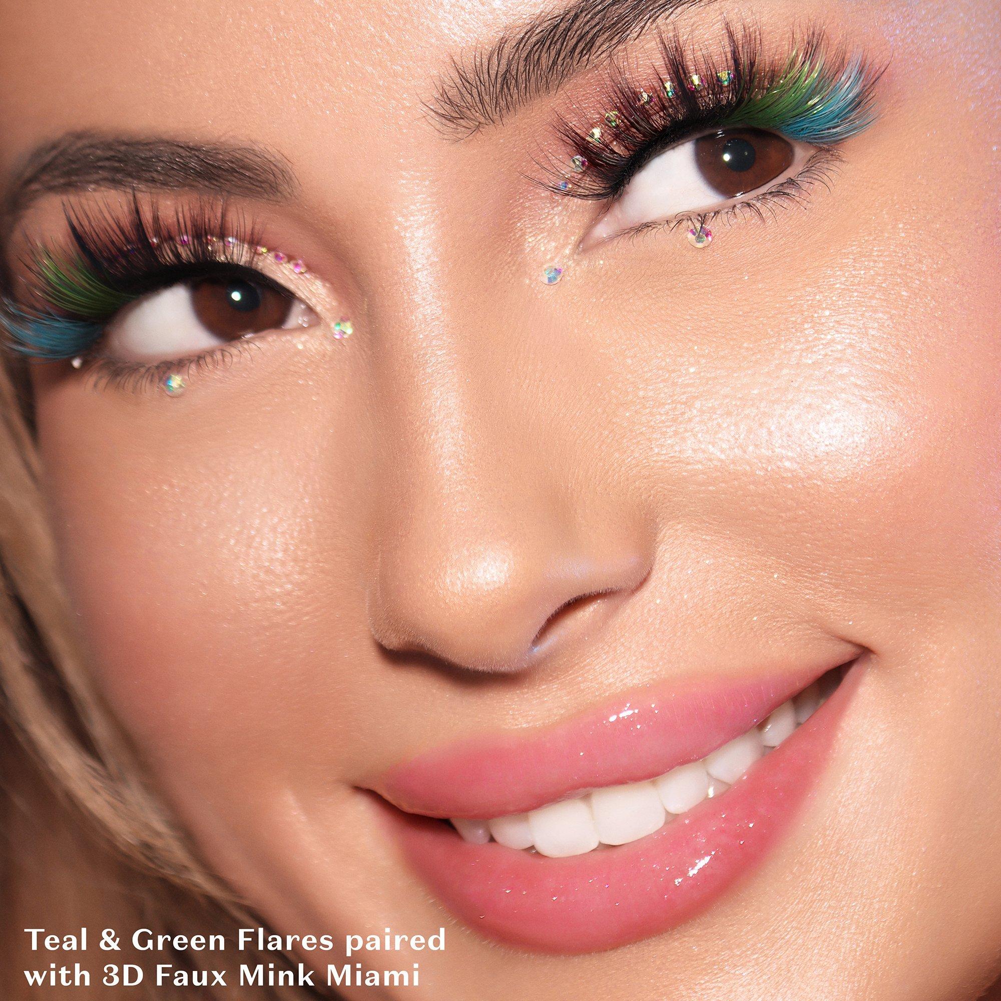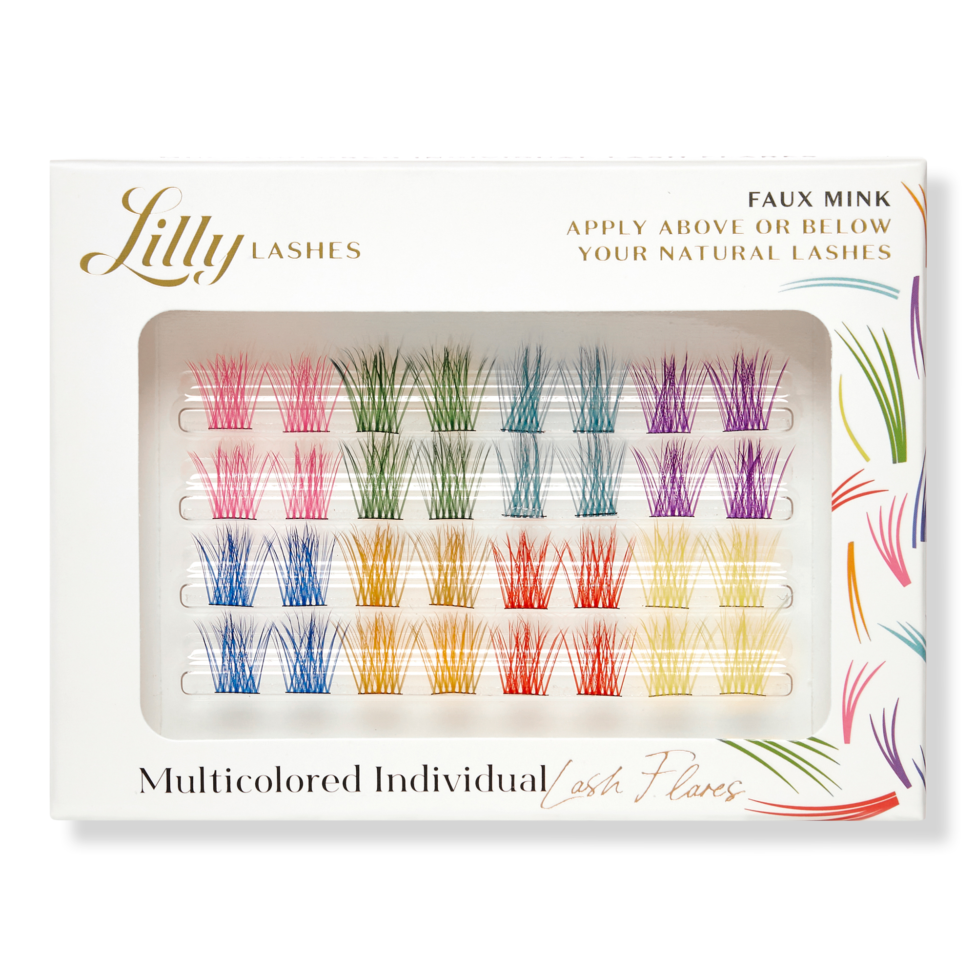 Get creative and have some fun with Lilly Lashes' Multicolored Individual Faux Mink Lash Flares. Whether you opt for a single accent color or blend them all for a mesmerizing prismatic effect, these lashes are ideal for making a statement at festivals or everyday self-expression!