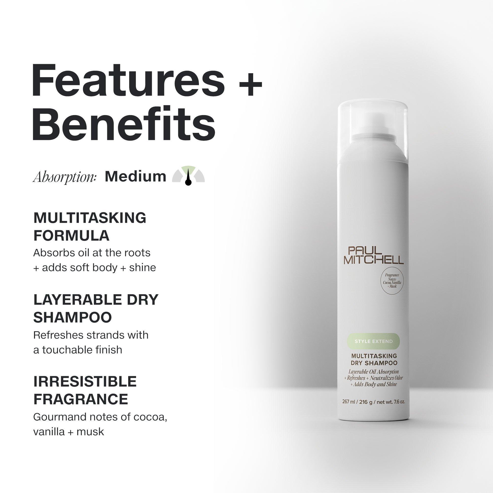Paul Mitchell Multitasking Dry Shampoo is your go-to for a quick style refresh between washes. Leaves second-day hair looking, feeling and smelling fresh.