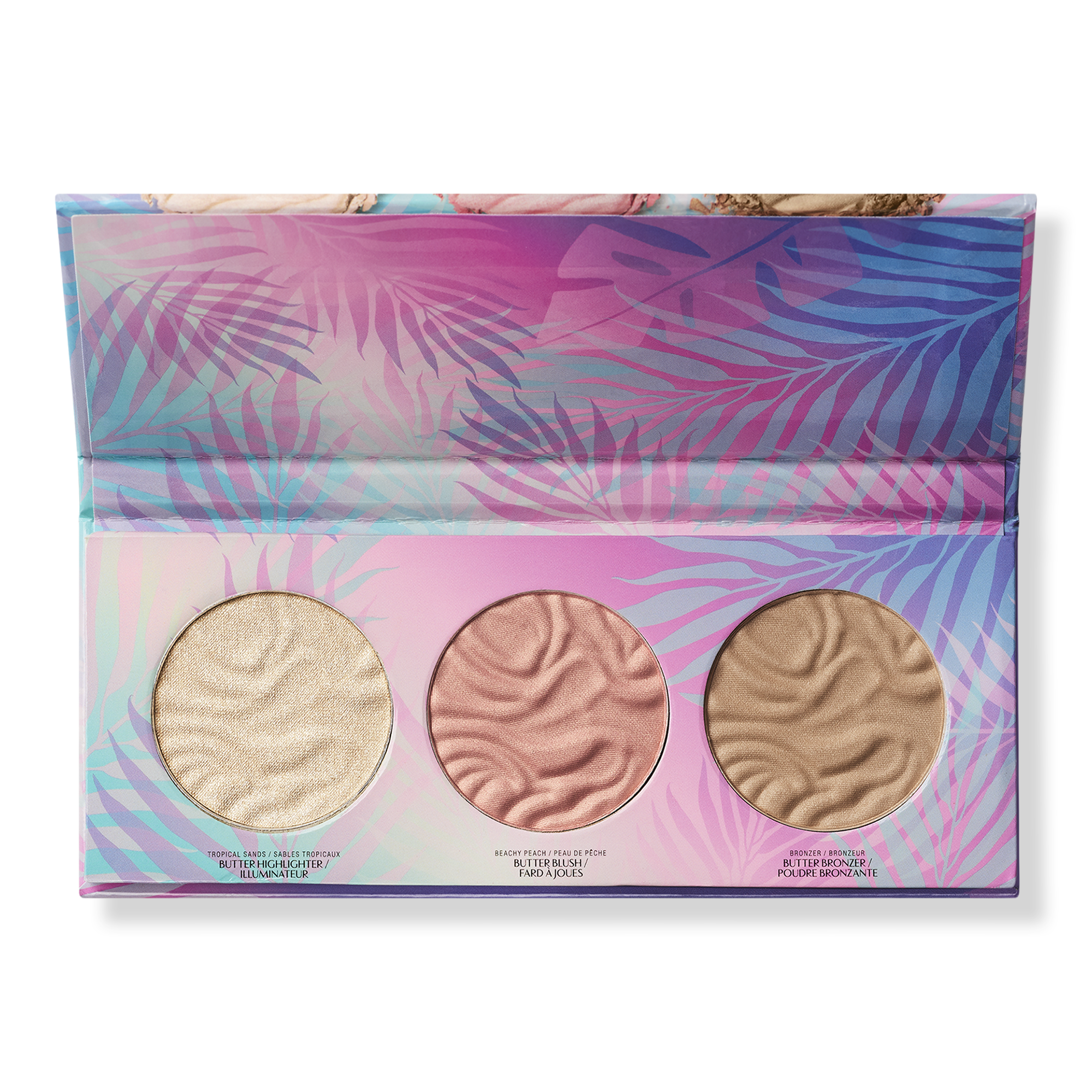 Bronzer: Mica, Boron Nitride, Talc, Dimethicone, Magnesium Myristate, Trimethylsiloxysilicate, Lauroyl Lysine, Ethyl Macadamiate, Phenoxyethanol, Caprylyl Glycol, Water/Eau, Fragrance/Parfum, Ethylhexylglycerin, Hexylene Glycol, O-Cymen-5-Ol, Silica, Triethoxycaprylylsilane, Astrocaryum Murumuru Seed Butter, Astrocaryum Tucuma Seed Butter, Theobroma Grandiflorum Seed Butter. May Contain/Peut Contenir: Iron Oxides (CI 77491, CI 77492, CI 77499), Titanium Dioxide (CI 77891). Highlighter: Isononyl Isononanoate, Mica, Trimethylsiloxysilicate, Vinyl Dimethicone/Methicone Silsesquioxane Crosspolymer, Ethylhexyl Isononanoate, Dimethicone, Bis-Diglyceryl Polyacyladipate-2, Disteardimonium Hectorite, Silica, Tin Oxide, Fragrance/Parfum, Phenoxyethanol, Sorbic Acid, Astrocaryum Murumuru Seed Butter, Astrocaryum Tucuma Seed Butter, Helianthus Annuus (Sunflower) Seed Oil, Theobroma Grandiflorum Seed Butter, Pentaerythrityl Tetraisostearate, Tocopherol, Caprylic/Capric Triglyceride, Glycine Soja (Soybean) Oil, Palmitoyl Hexapeptide-12, Stearalkonium Hectorite, Propylene Carbonate, Sodium Hyaluronate. May Contain/Peut Contenir: Iron Oxides (CI 77491, CI 77492, CI 77499), Titanium Dioxide (CI 77891). Blush: Mica, Synthetic Fluorphlogopite, Boron Nitride, Magnesium Myristate, Talc, Octyldodecyl Stearoyl Stearate, Lauroyl Lysine, Isostearyl Neopentanoate, Astrocaryum Murumuru Seed Butter, Dimethicone, Fragrance/Parfum, Silica, Dimethiconol Stearate, Polybutene, Phenoxyethanol, Caprylyl Glycol, Ethylhexylglycerin, Hexylene Glycol, O-Cymen-5-Ol, Triethoxycaprylylsilane, Octyldodecanol, Astrocaryum Tucuma Seed Butter, Theobroma Grandiflorum Seed Butter, Tin Oxide, Ethylene/Propylene/Styrene Copolymer, Butylene/Ethylene/Styrene Copolymer. May Contain/Peut Contenir: Carmine (CI 75470), Iron Oxides (CI 77491, CI 77492, CI 77499), Red 30 (CI 73360), Titanium Dioxide (CI 77891), Ultramarines (CI 77007).