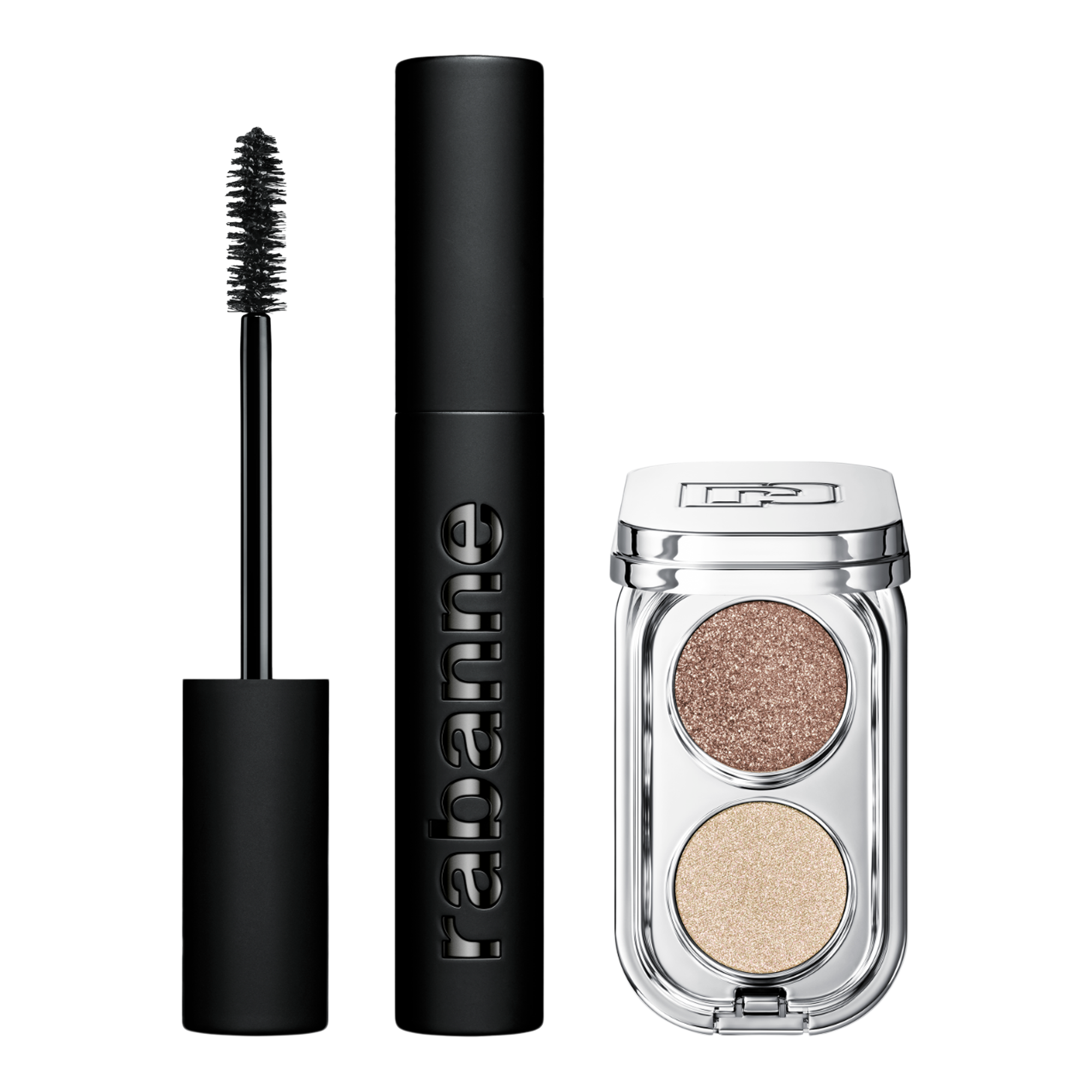 Unleash bold looks with Rabanne’s Holiday Gift Set featuring the Mini Eyeshadow Palette Duo and Rockstar Volumizing Mascara. Play with multi-finish, high-pigment shadows and amplify lashes with deep black volume, 24h performance, and a weightless feel.