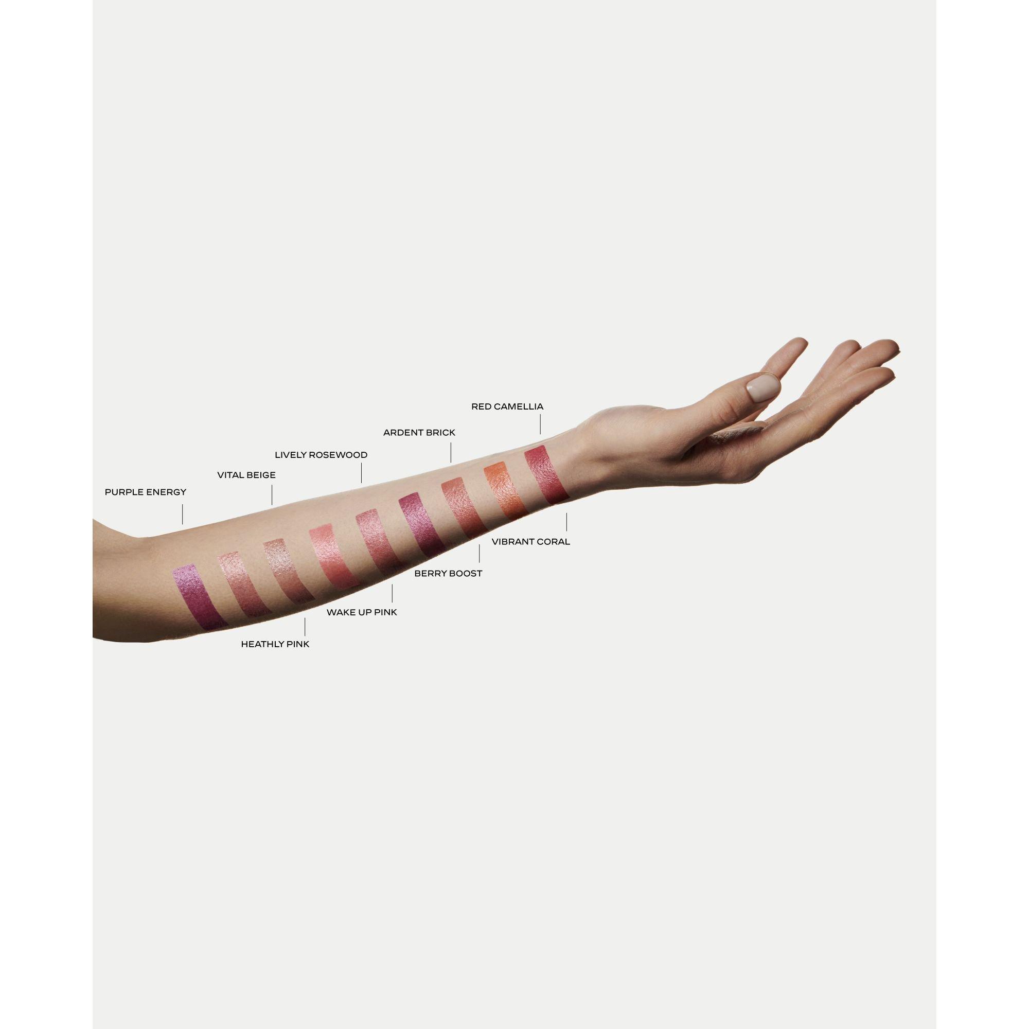 A multi-use lip and cheek balm enriched with Red Camellia Oil. The nourishing, buttery formula melts into skin while adding a touch of colour. Lips appear vibrant and plump.