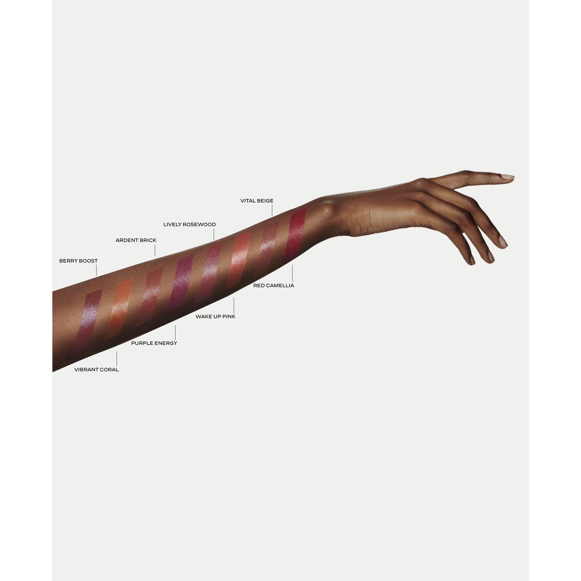 A multi-use lip and cheek balm enriched with Red Camellia Oil. The nourishing, buttery formula melts into skin while adding a touch of colour. Lips appear vibrant and plump.