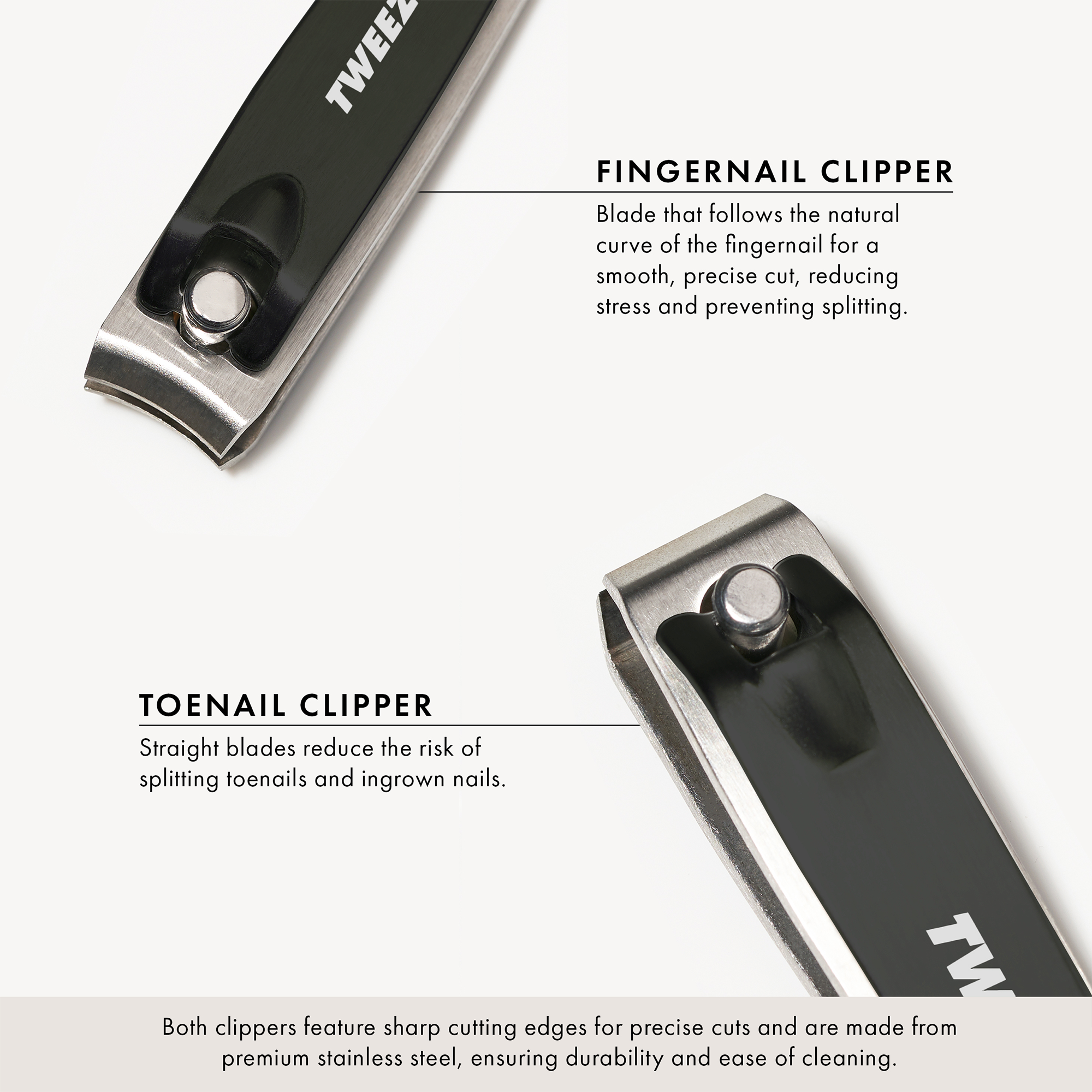 • Straight precision blades reduce risk of splitting toenails and prevent ingrown nails.