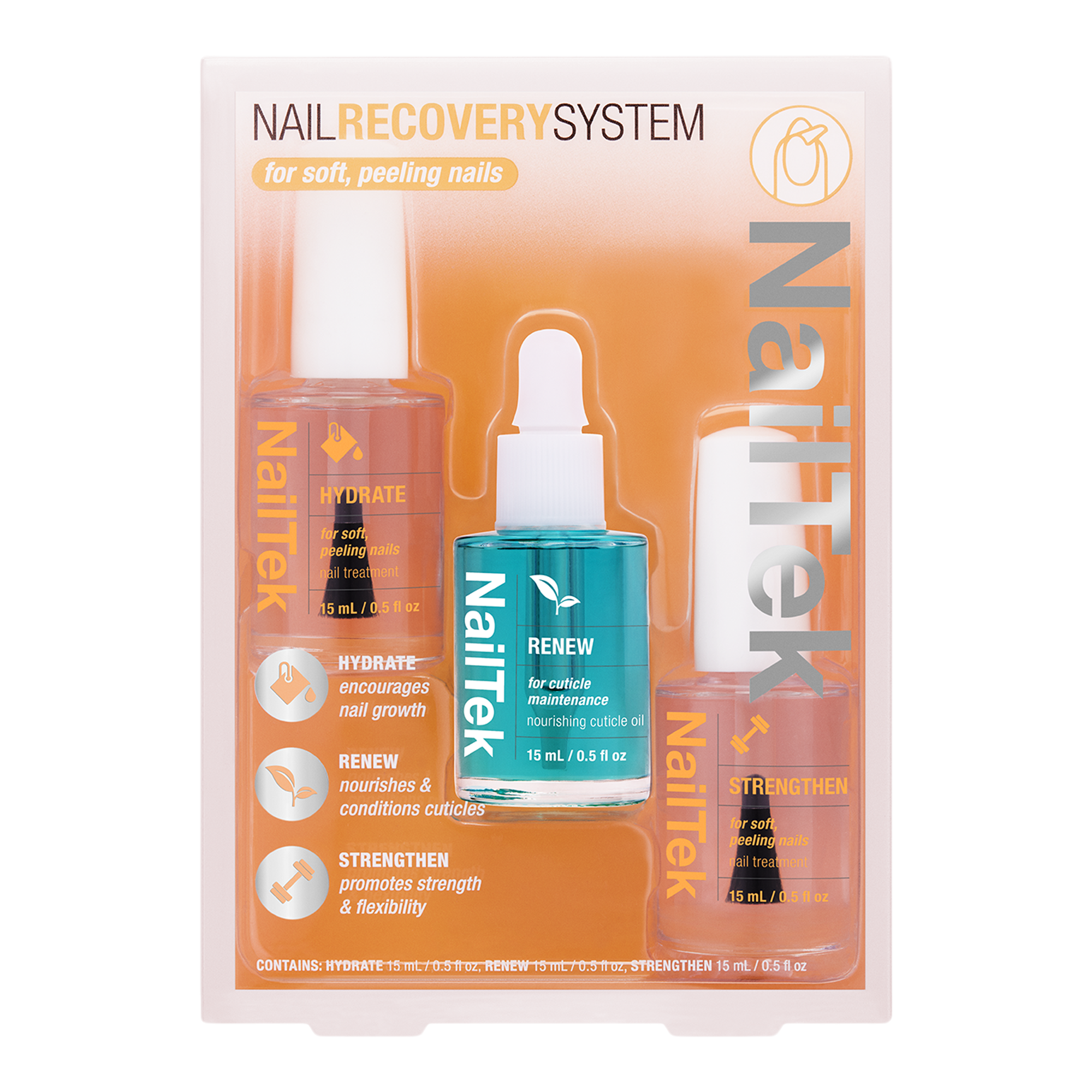 The Nail Recovery System by Nail Tek breathes new life into your nails', improving strength and flexibility. With consistent use over time, nails are restored to their former glory.