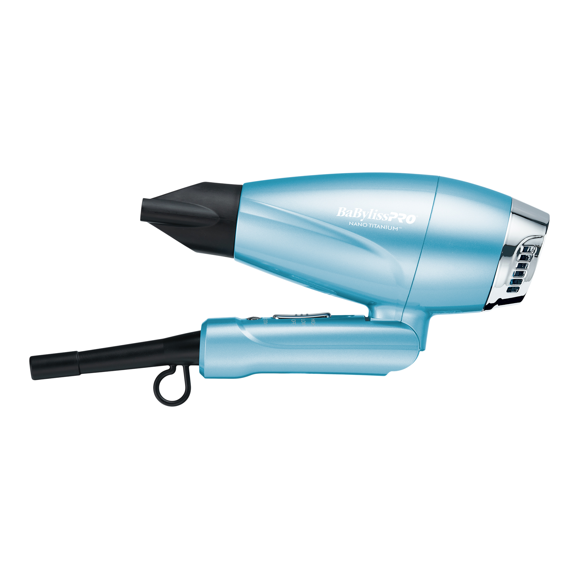 BaBylissPRO Nano Titanium Compact Folding Ionic Dryer reduces frizz and offers styling versality, on-the-go.