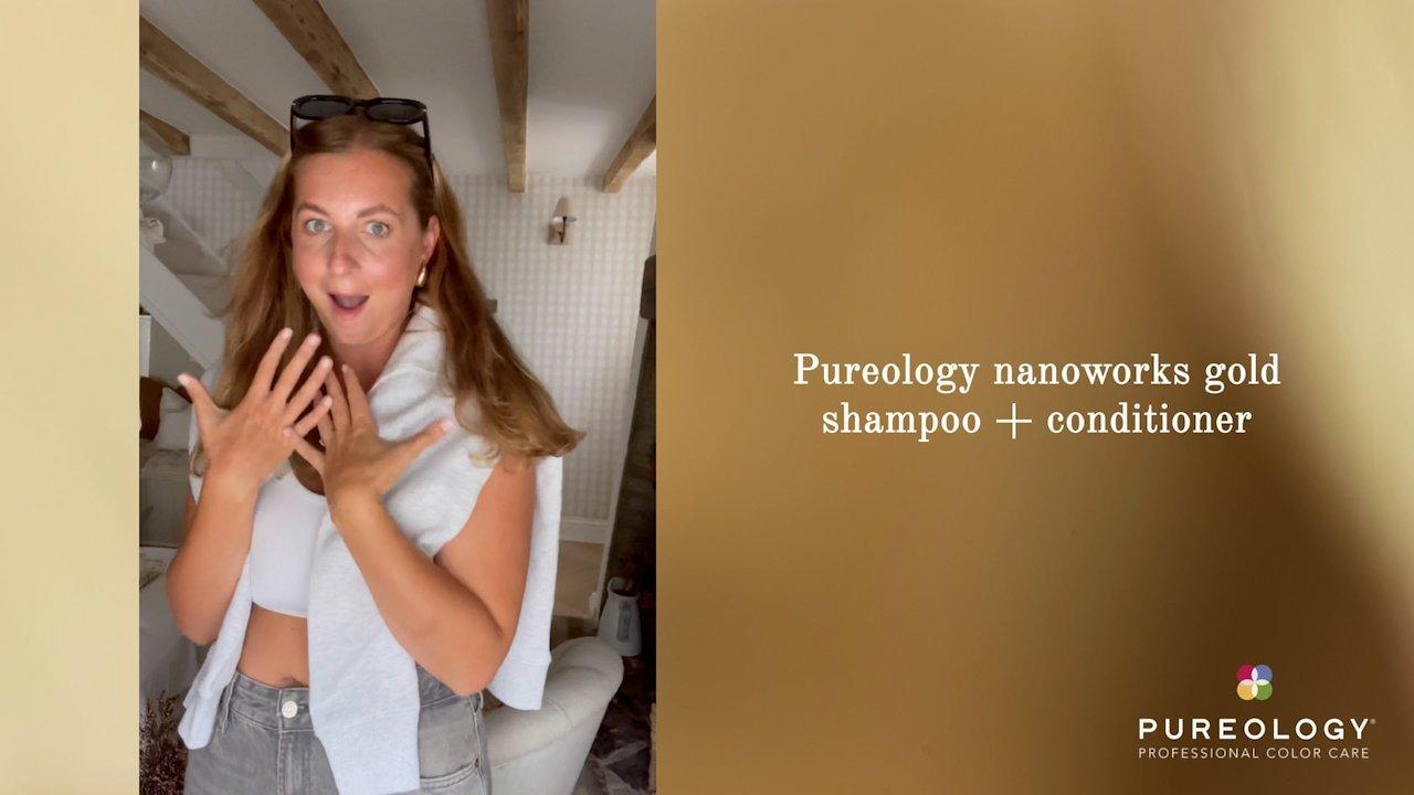 Pureology's Nanoworks Gold Shampoo is a rich, transformative sulfate-free shampoo that renews softness, manageability, and shine to cleanse dull, coarse, brittle, or very dry color-treated hair.