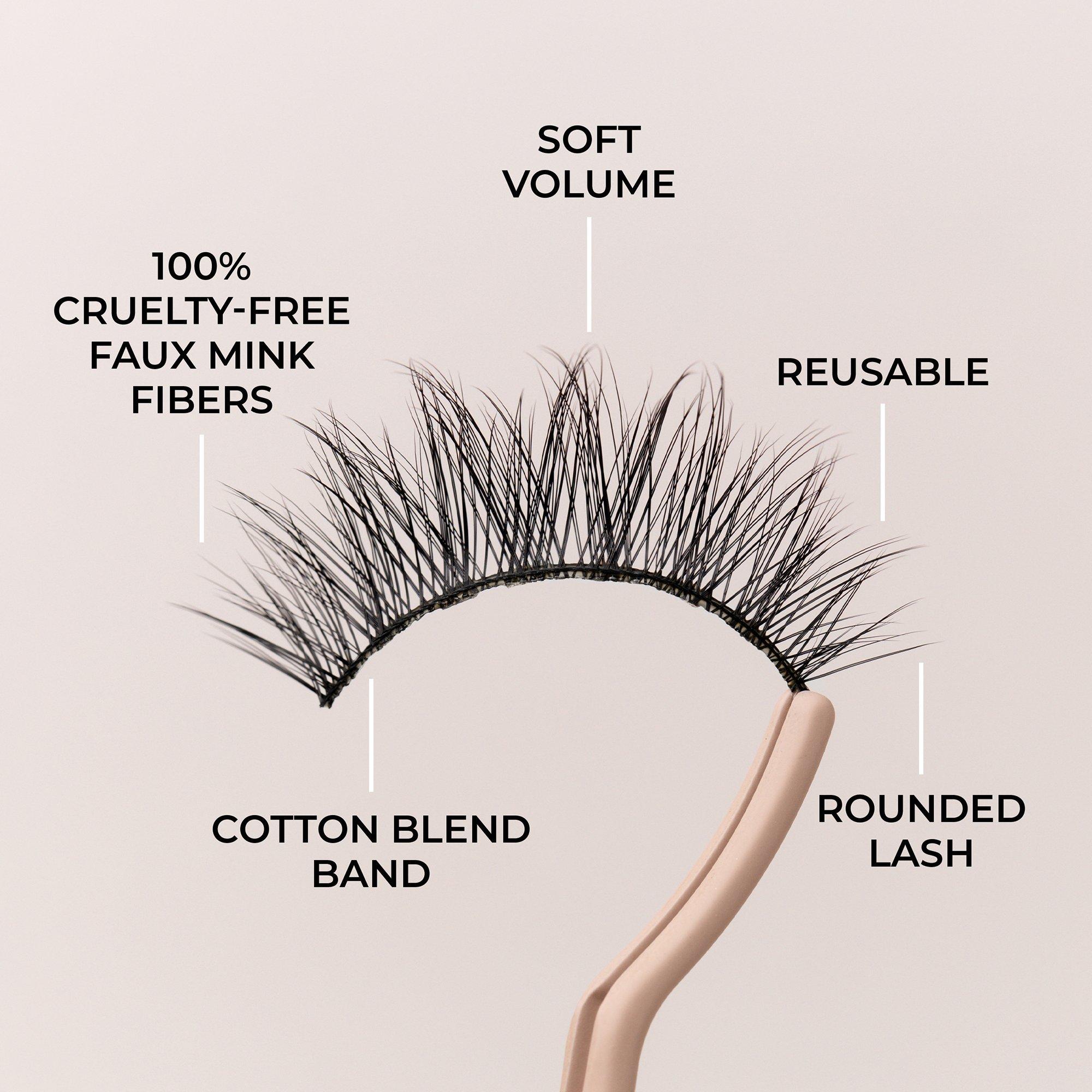 A weightless, flexible, and customizable lash woven on a cotton blend band to seamlessly fit your lash line for all-day wear. 3D fibers in a V-Formation create a lifted eye-opening effect.