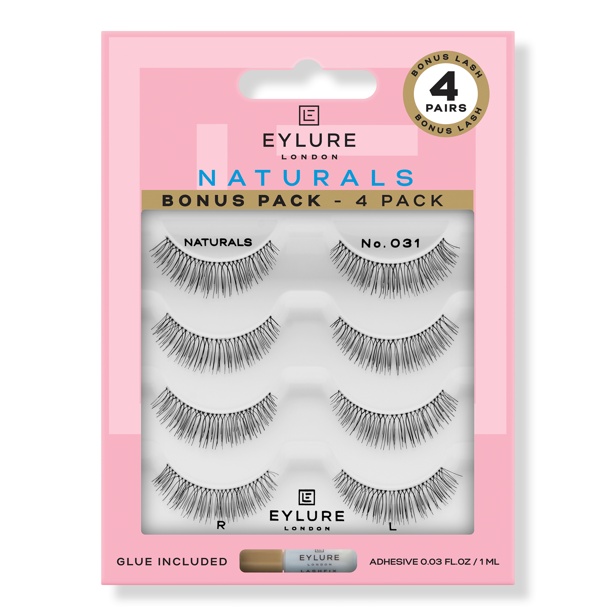 Enhance your gaze with the gorgeously refined Eylure Naturals No. 031 Eyelashes Multipack, the perfect pair for lengthening and defining your lashes without mascara. Every lash pack comes with 18-hour wear latex-free glue and is reusable up to 5 wears.